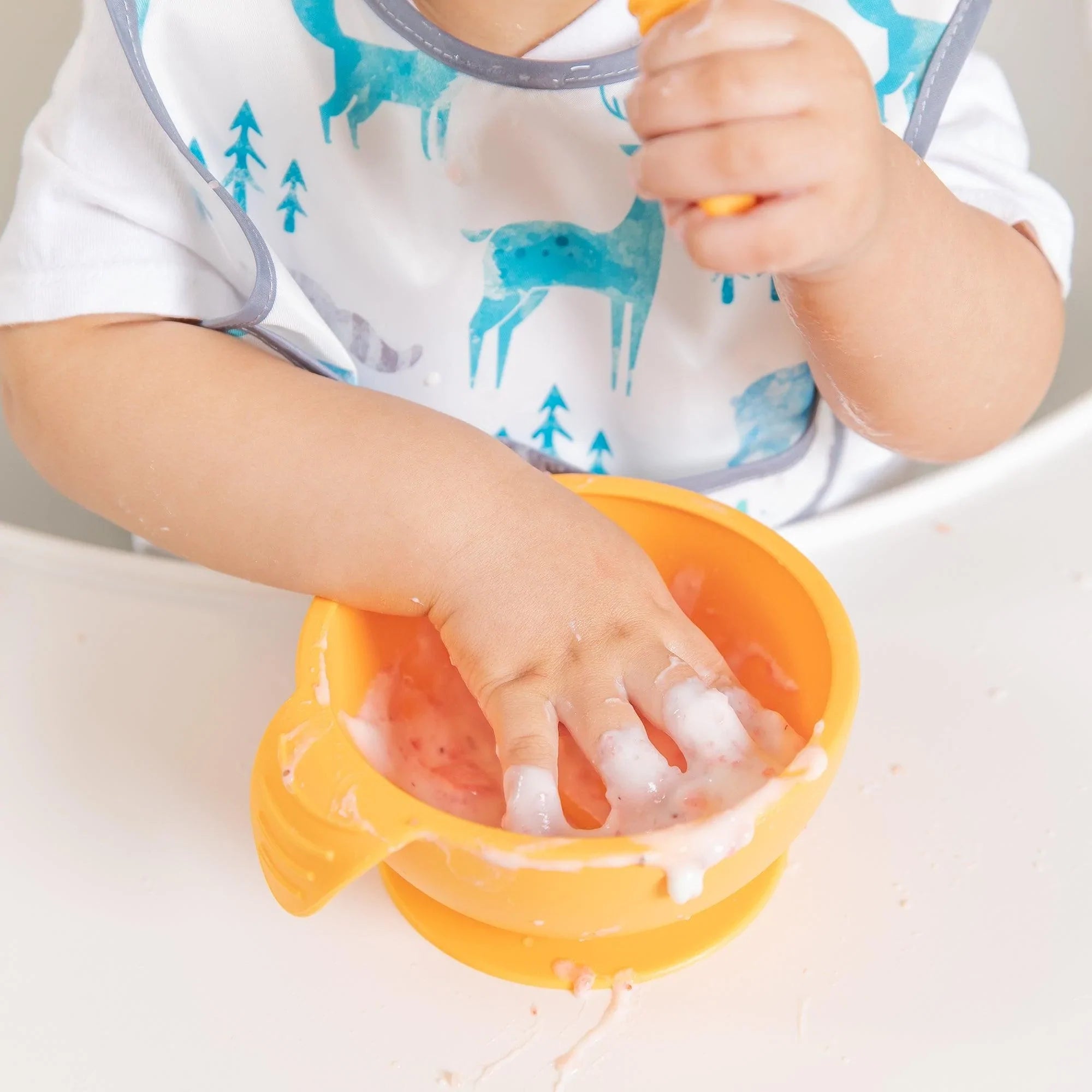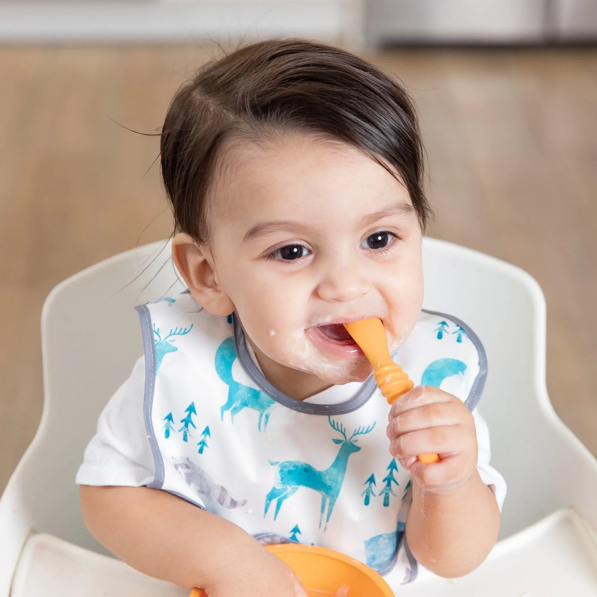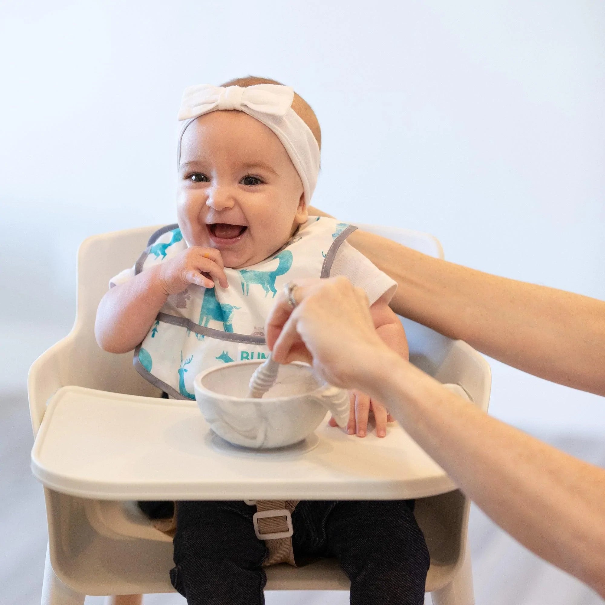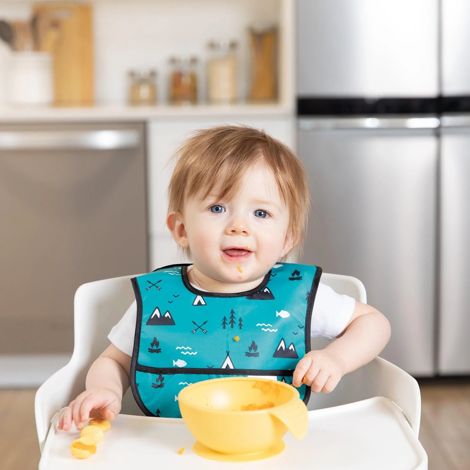 Parfaits pour les premiers repas de bébé, ces bavoirs s'attachent à l'arrière de l'épaule à l'aide d'une fermeture auto-agrippante pour un ajustement rapide, ajustable et résistant aux tiraillements. Ils sont dotés d'une grande poche fourre-tout qui aide à contenir les éclaboussures, les miettes et autres. Les bavoirs Starter sont fabriqués dans le tissu léger, durable et imperméable de Bumkins, qui résiste aux taches et aux odeurs. Grâce à leur construction monocouche, il n'est pas nécessaire de s'inquiéter de la prolifération de substances indésirables entre les couches de tissu. Essuyables et lavables en machine, ces bavoirs sont faciles à nettoyer, et un paquet de deux vous permet d'en avoir toujours un à portée de main !