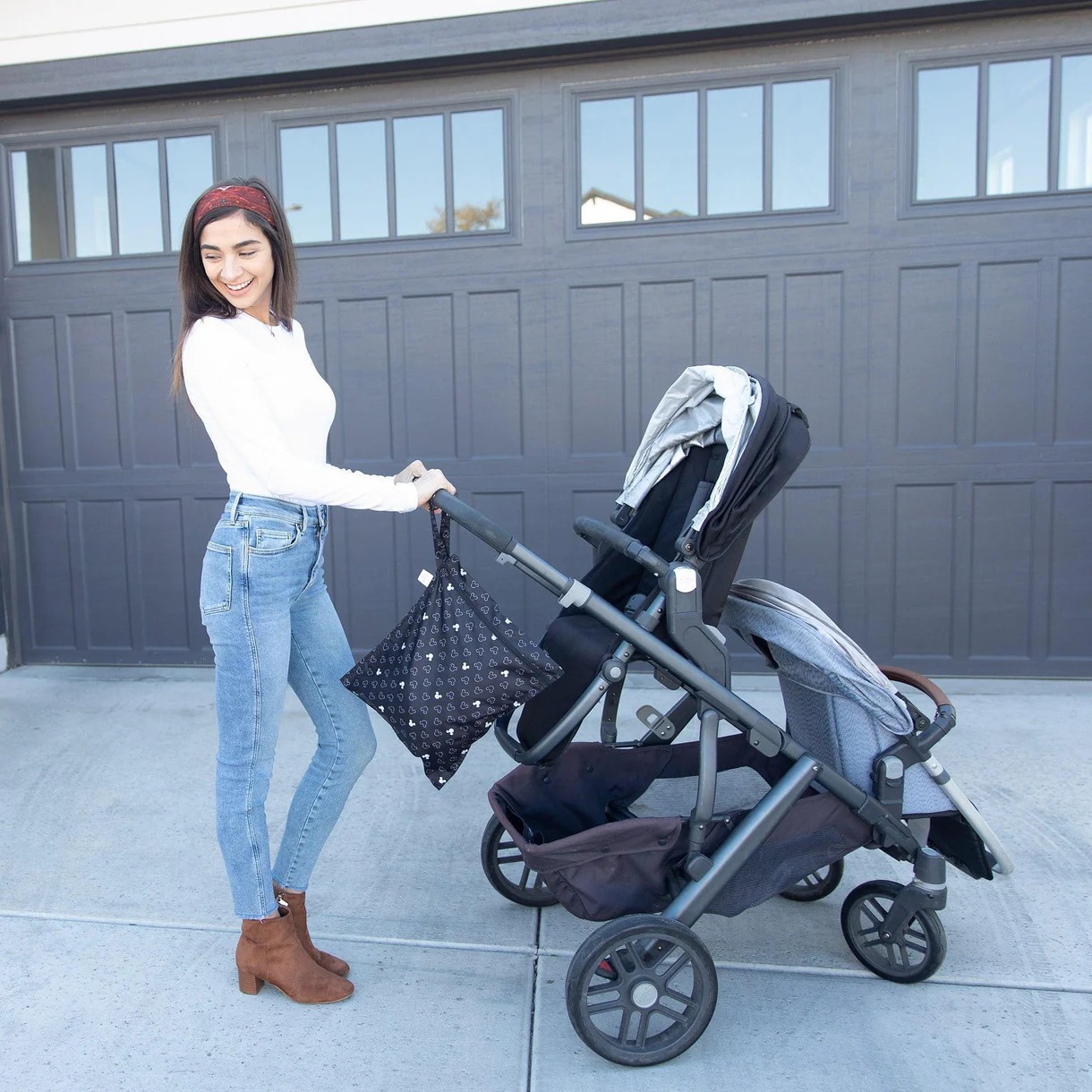Meilleure alternative aux sacs plastiques à usage unique, nos sacs humides réutilisables sont fabriqués à partir du même tissu imperméable que le SuperBib primé de Bumkins. Nos sacs sont dotés de coutures thermosoudées pour une véritable protection imperméable. Une fermeture à glissière douce permet d'éviter les dégâts, et la construction d'un seul pli signifie qu'il n'y a pas d'inquiétude à avoir quant à la croissance d'éléments dégoûtants entre les couches de tissu. Les sacs humides sont parfaits pour transporter des couches, des vêtements de sport sales et des maillots de bain mouillés. Ces sacs ne servent pas uniquement à transporter des affaires mouillées, ils constituent également d'excellents organisateurs pour les jouets, les accessoires, les articles de toilette, les appareils électroniques, les voyages et bien plus encore ! Avec une poignée à pression, vous pouvez accrocher votre sac là où vous en avez besoin - poussette, table à langer ou valise. Les sacs sont à compartiment unique, sans soufflet, non isolés et non extensibles.