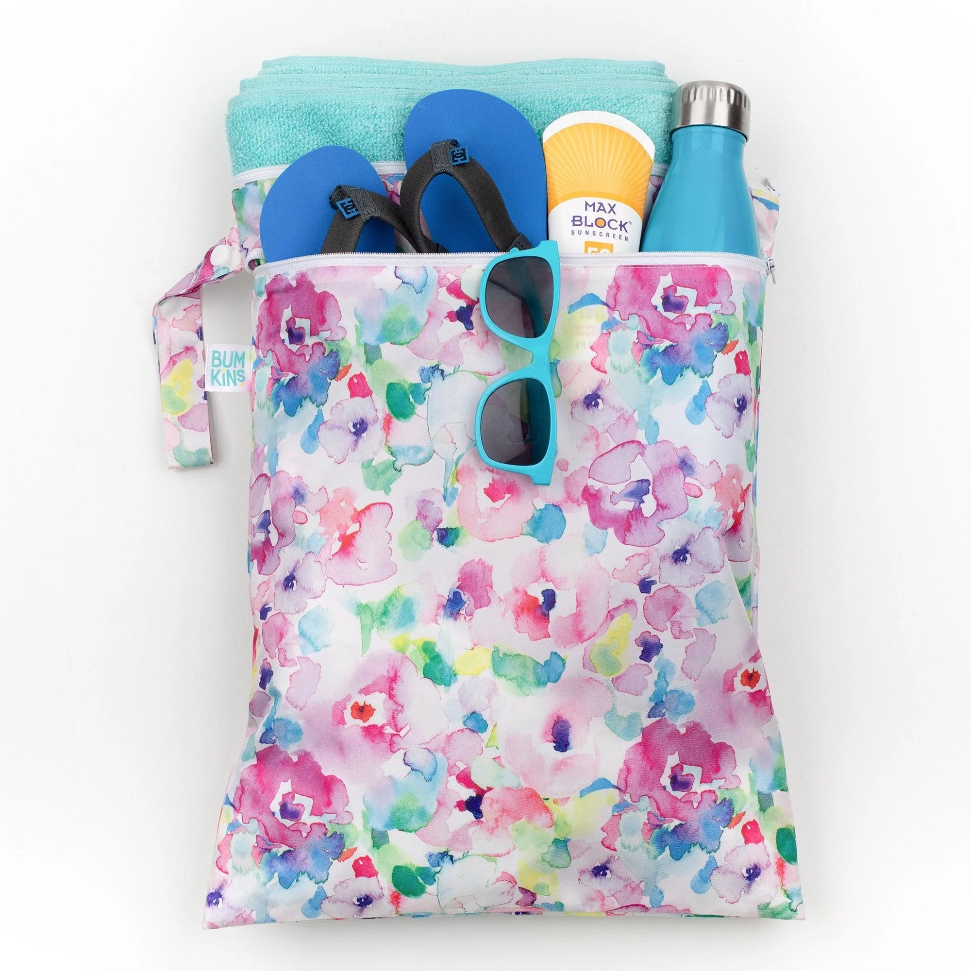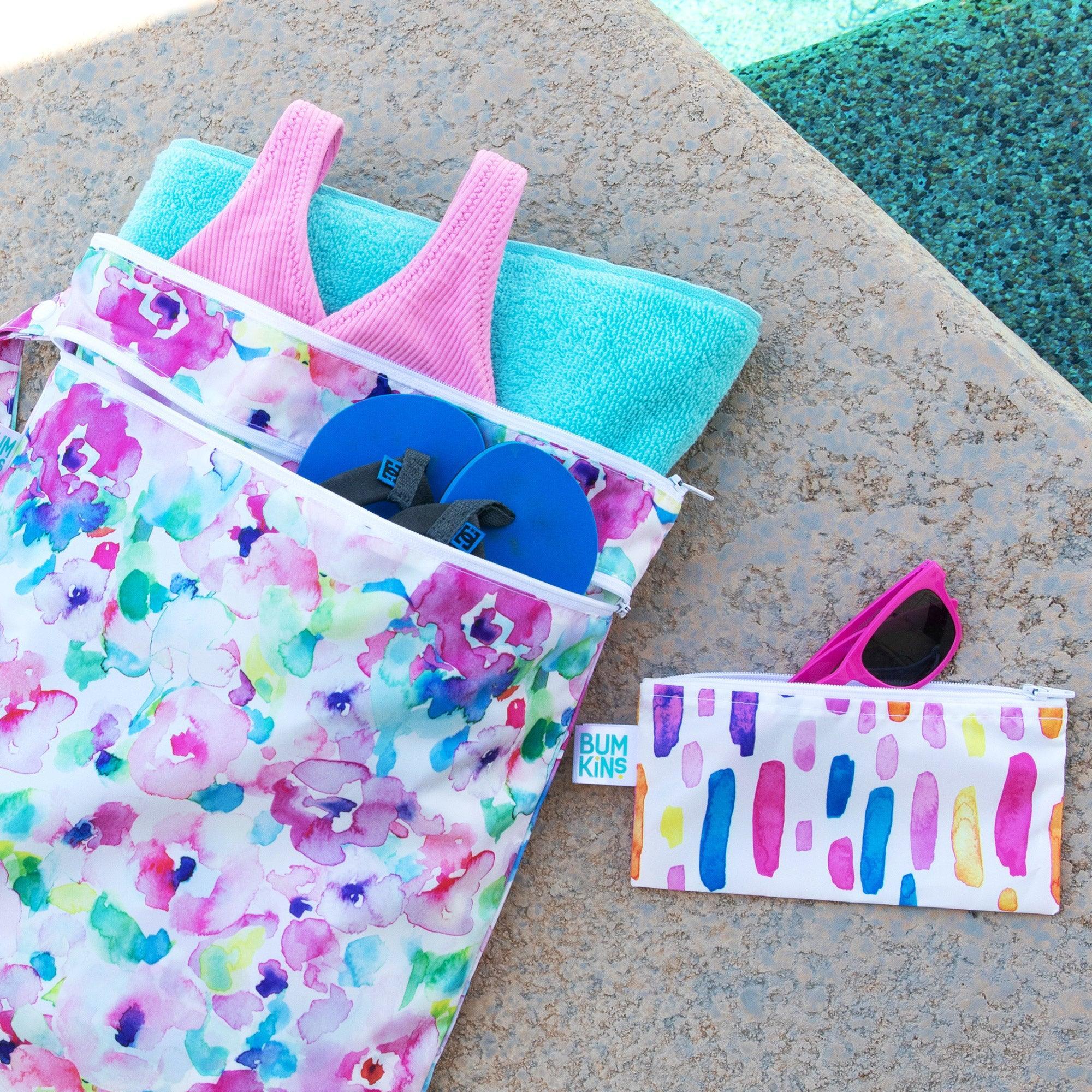Meilleure alternative aux sacs plastiques à usage unique, nos sacs imperméable/étanche sont fabriqués à partir du même tissu imperméable que notre SuperBib. Nos sacs sont dotés de coutures thermosoudées pour une véritable protection imperméable. Deux compartiments à fermeture à glissière permettent de séparer les articles secs et humides. Grâce à la construction monocouche, vous n'avez pas à vous soucier de la prolifération d'éléments dégoûtants entre les couches de tissu. Les sacs Wet / Dry sont parfaits pour transporter les couches, les vêtements de sport sales et les maillots de bain mouillés. Ces sacs sont d'excellents organisateurs pour les jouets, les accessoires, les articles de toilette, les appareils électroniques, les voyages et bien plus encore ! Avec une poignée à pression, vous pouvez accrocher votre sac là où vous en avez besoin - poussette, table à langer ou valise. Les sacs n'ont pas de soufflet, ne sont pas isolés et ne sont pas extensibles.
