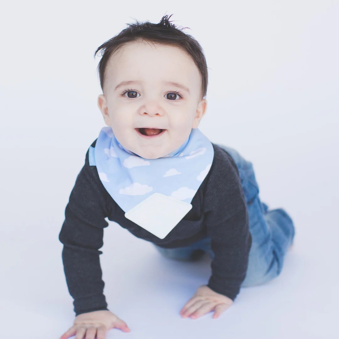 Zacht, superabsorberend katoen, aantrekkelijke trendy patronen en een voedselveilige siliconen bijtring die handig aan het uiteinde van de bandana is bevestigd, zorgen voor een stijlvol, functioneel en duurzaam slabbetje dat qua kwaliteit en comfort een stapje boven de rest uitsteekt.