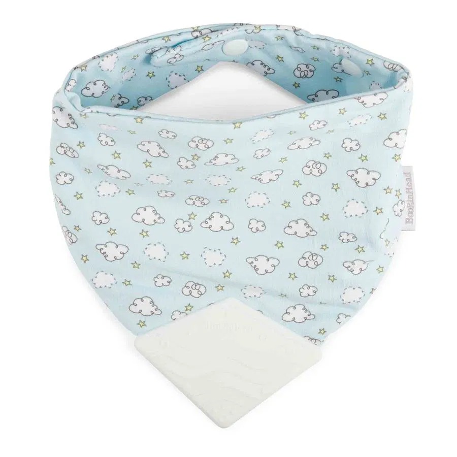 Houd het kwijlen onder controle! BooginHead Bandana Teether Bib is een stijlvol slabbetje voor kwijlende en tandjes krijgen baby's. De bevestigde voedselveilige siliconen bijtring masseert pijnlijke tandvlees en het zachte katoenen slabbetje houdt de kleding en huid van de baby droog. De opvallende en klassieke patronen zijn met de hand ontworpen voor een chique, functioneel product dat gemoedsrust biedt en er ook nog eens schattig uitziet. Dit slabbetje is zeer comfortabel om te dragen, machinewasbaar en heeft een sluiting met twee drukknopen, zodat het maandenlang dagelijks mee kan groeien met uw baby. Een geweldig kraamcadeau!