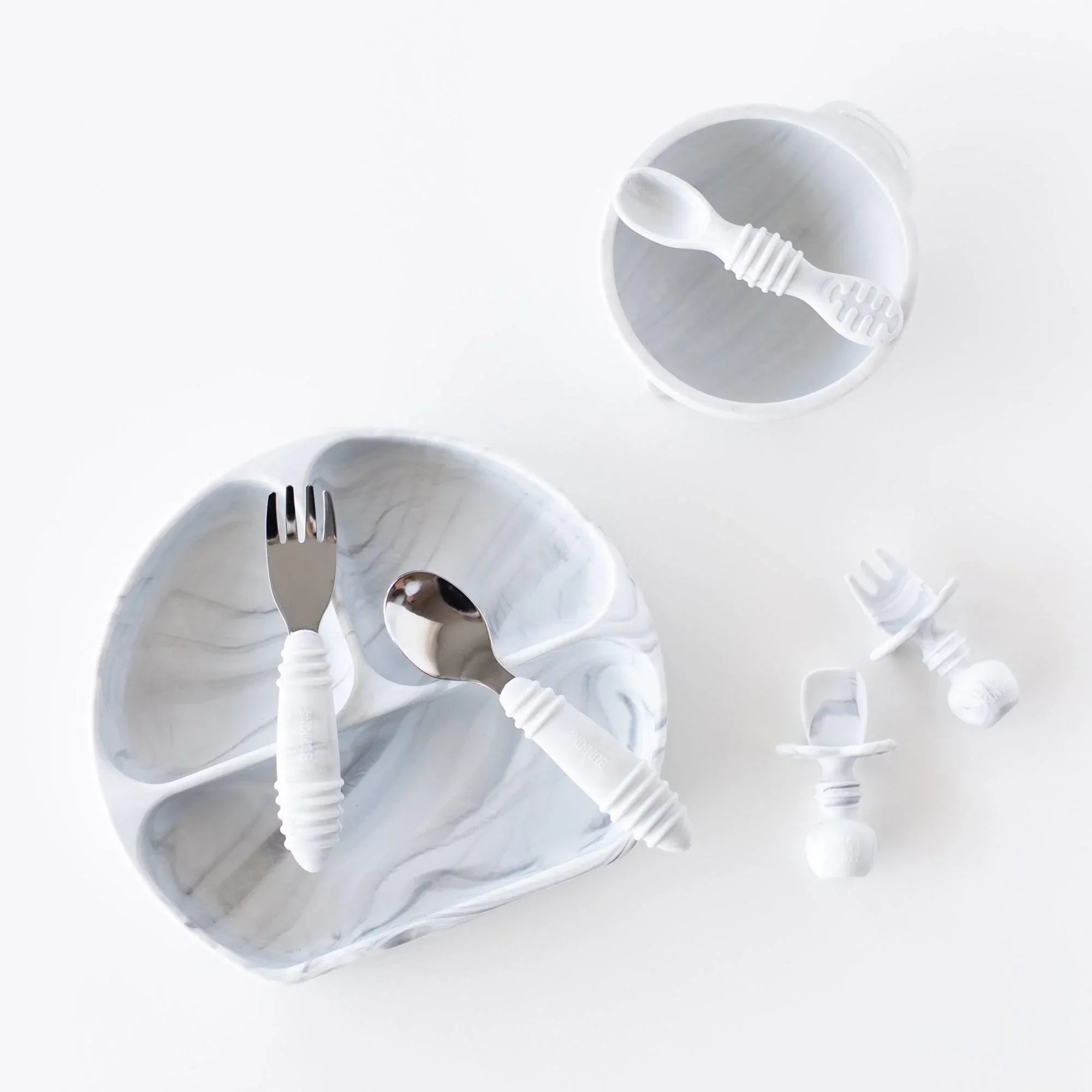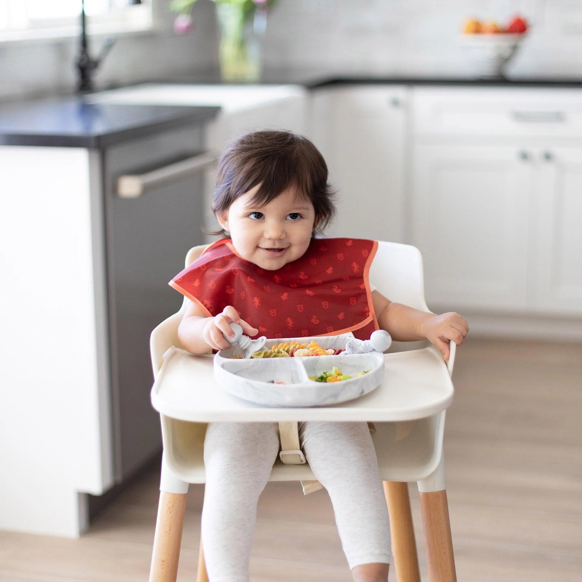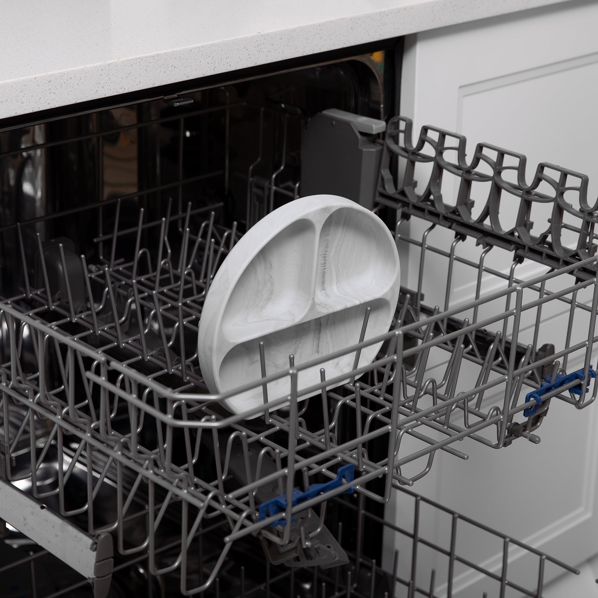 Our Silicone Grip Dish is perfect for little eaters. The divided plate is perfectly sized for toddler portions. A strong suction base ensures the dish stays put – even with the most aggressive toddler! Great for use on highchair trays or tables. A straight side allows kids to belly up to the plate, allowing less of a mess. Silicone can withstand low and high temperatures, easily transitioning from the refrigerator or freezer to the oven or microwave. Made with 100% food-safe silicone that’s durable, stain and bacteria resistant.