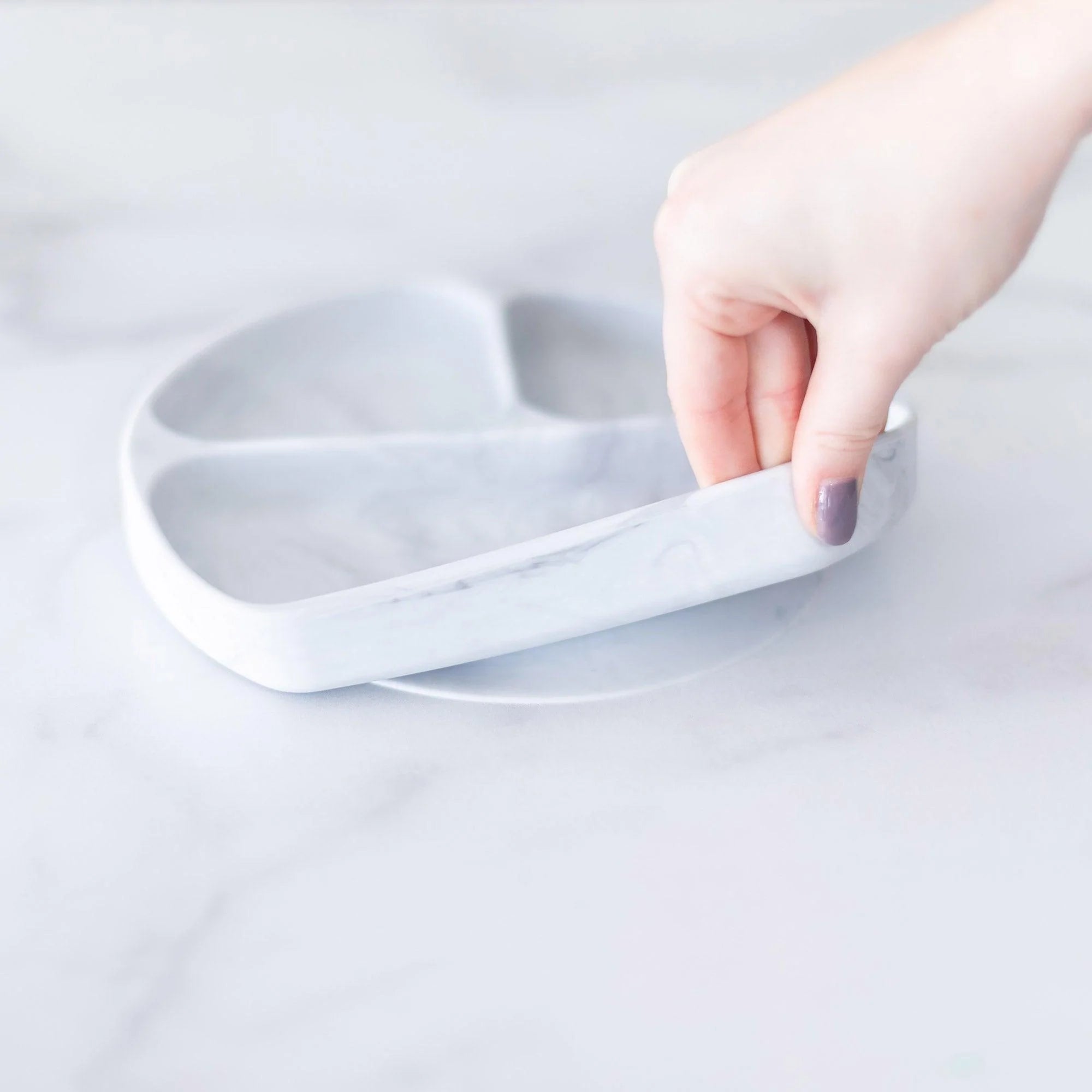 Tweede Kans (zonder originele verpakking) - Siliconen Vakjesbord met Zuignap (3 vaks) - Marmer