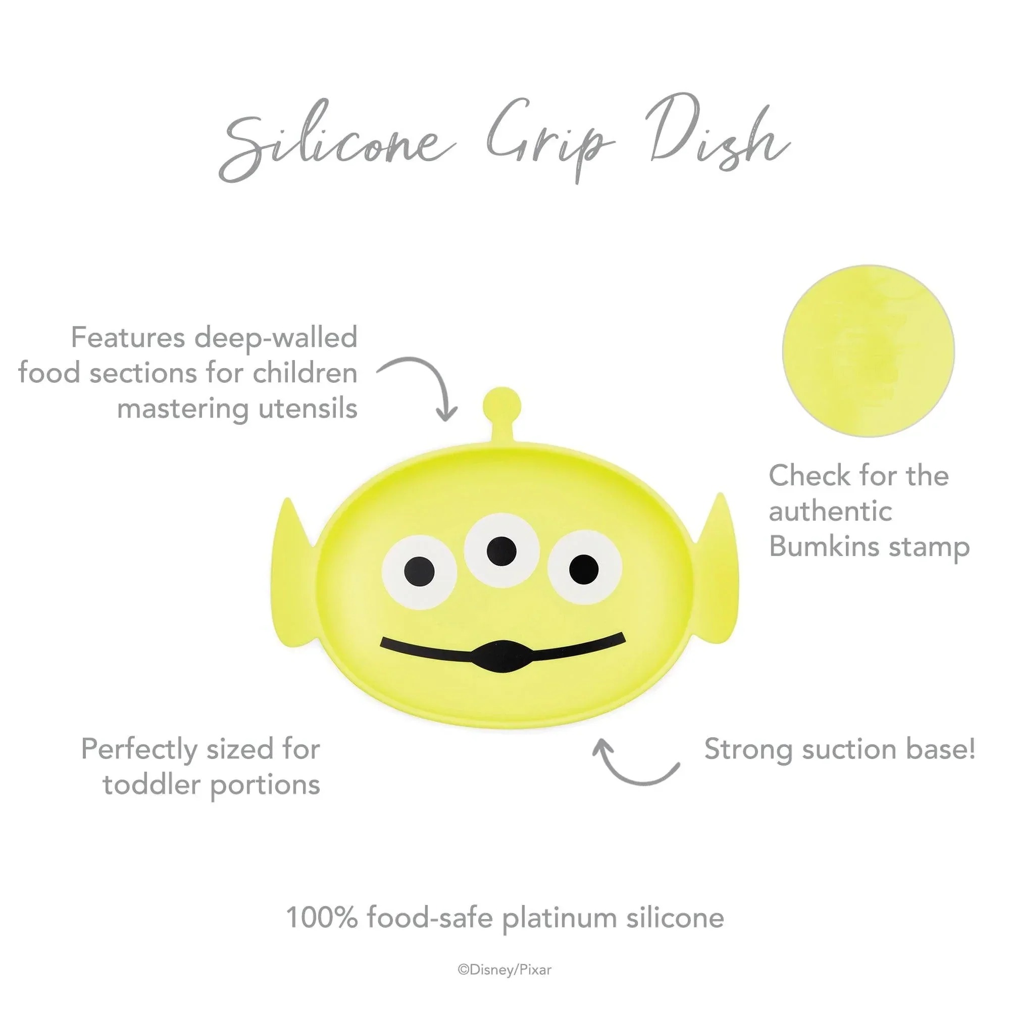 Geïnspireerd door Disney en Pixar's Toy Story hebben we dit bord in de vorm van een Toy Story-alien ontworpen. Zowel kinderen als ouders zullen het geweldig vinden om de tafel te dekken met dit vriendelijke gezicht. Onze siliconen borden met antislip zijn perfect voor kinderen die leren zelf te eten. Onze borden hebben de perfecte afmetingen voor peuters. Dankzij de sterke zuignap blijven ze goed op hun plaats zitten, zelfs bij de meest onstuimige peuters! Zeer geschikt voor gebruik op kinderstoelbladen of tafels. Siliconen zijn bestand tegen lage en hoge temperaturen en kunnen gemakkelijk van de koelkast of vriezer naar de oven of magnetron worden overgebracht. Gemaakt van 100% voedselveilige siliconen die duurzaam, vlek- en bacteriebestendig zijn.