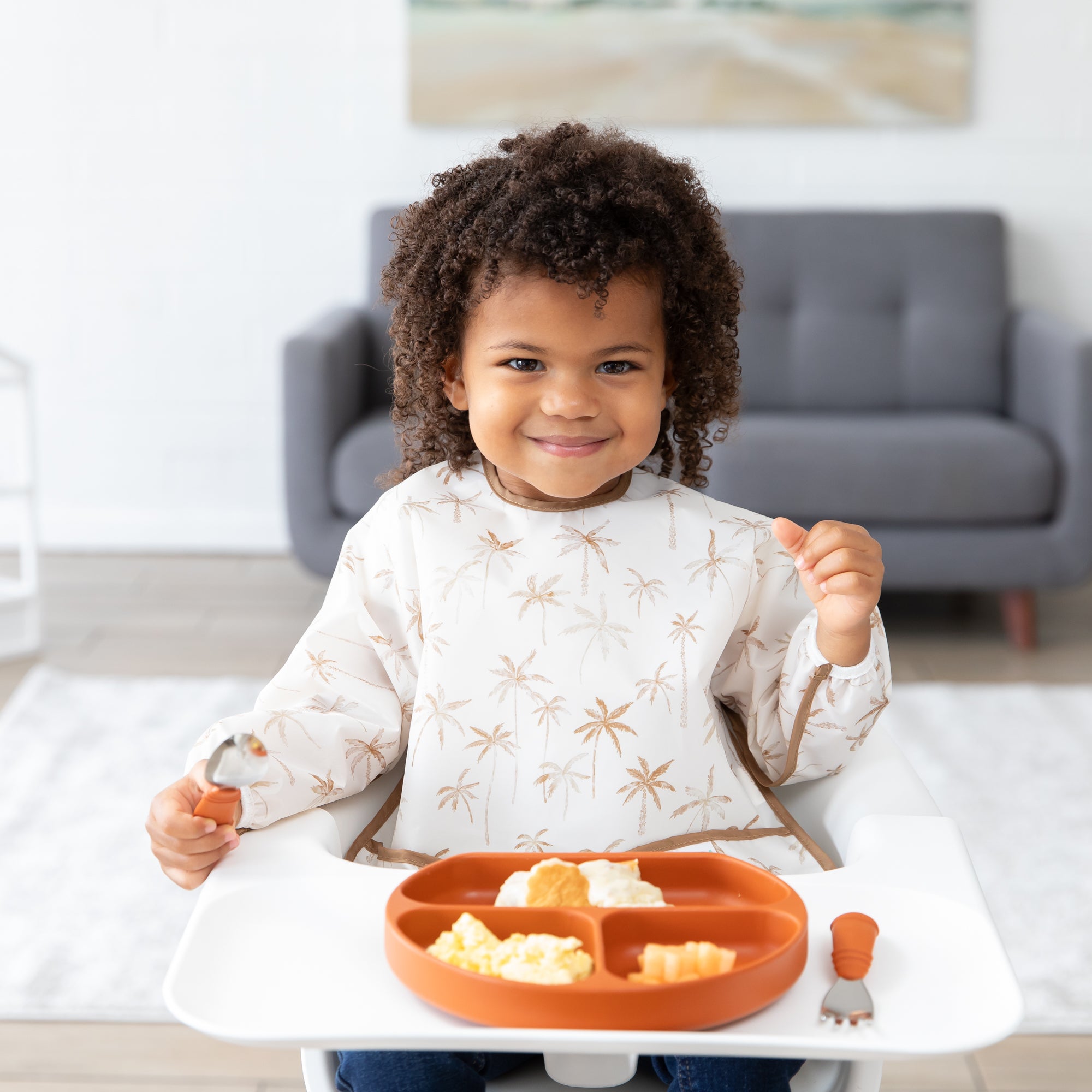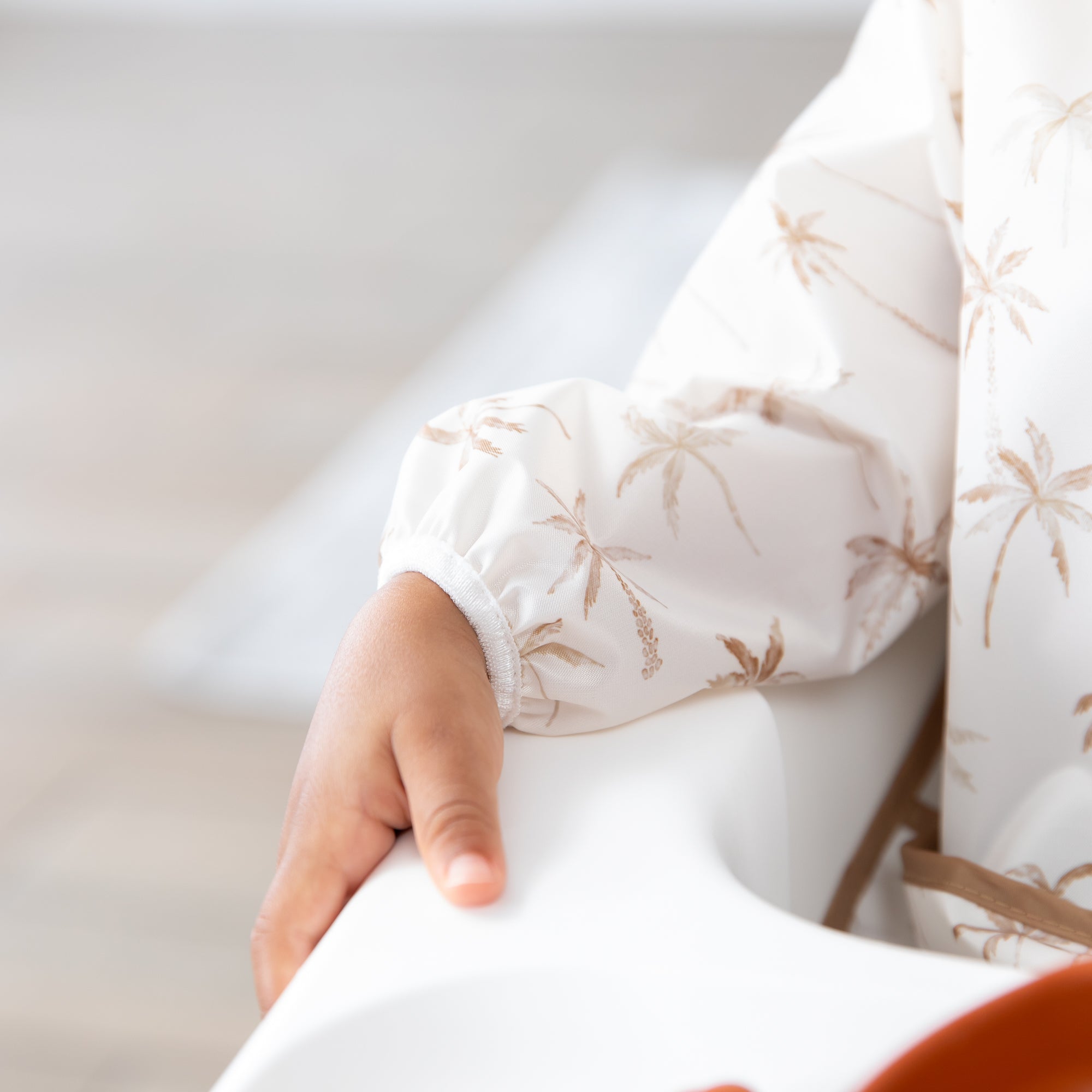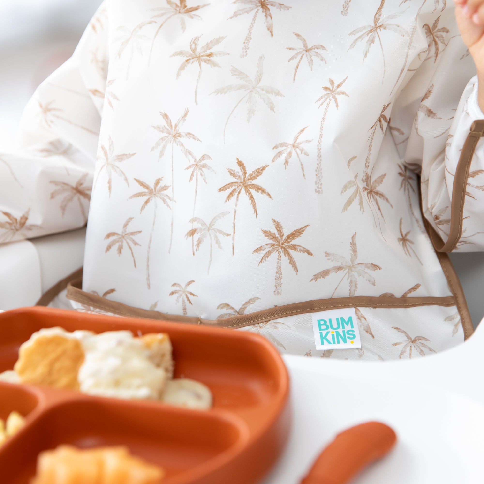 Het slabbetje met mouw is ruim bemeten en ideaal voor babyvoeding. Het is gemaakt van de lichtgewicht, duurzame, waterbestendige stof van Bumkins die vlekken en geurtjes tegengaat. Met maar één laag stof hoef je je geen zorgen te maken dat er vieze dingen tussen de lagen groeien. Pas de pasvorm aan je kleintje aan met een striksluiting aan de achterkant en elastische manchetten. Een groot opvangbakje helpt morsen, kruimels en nog veel meer op te vangen. Afveegbaar en machinewasbaar voor eenvoudig schoonmaken, zodat je hem keer op keer kunt gebruiken!