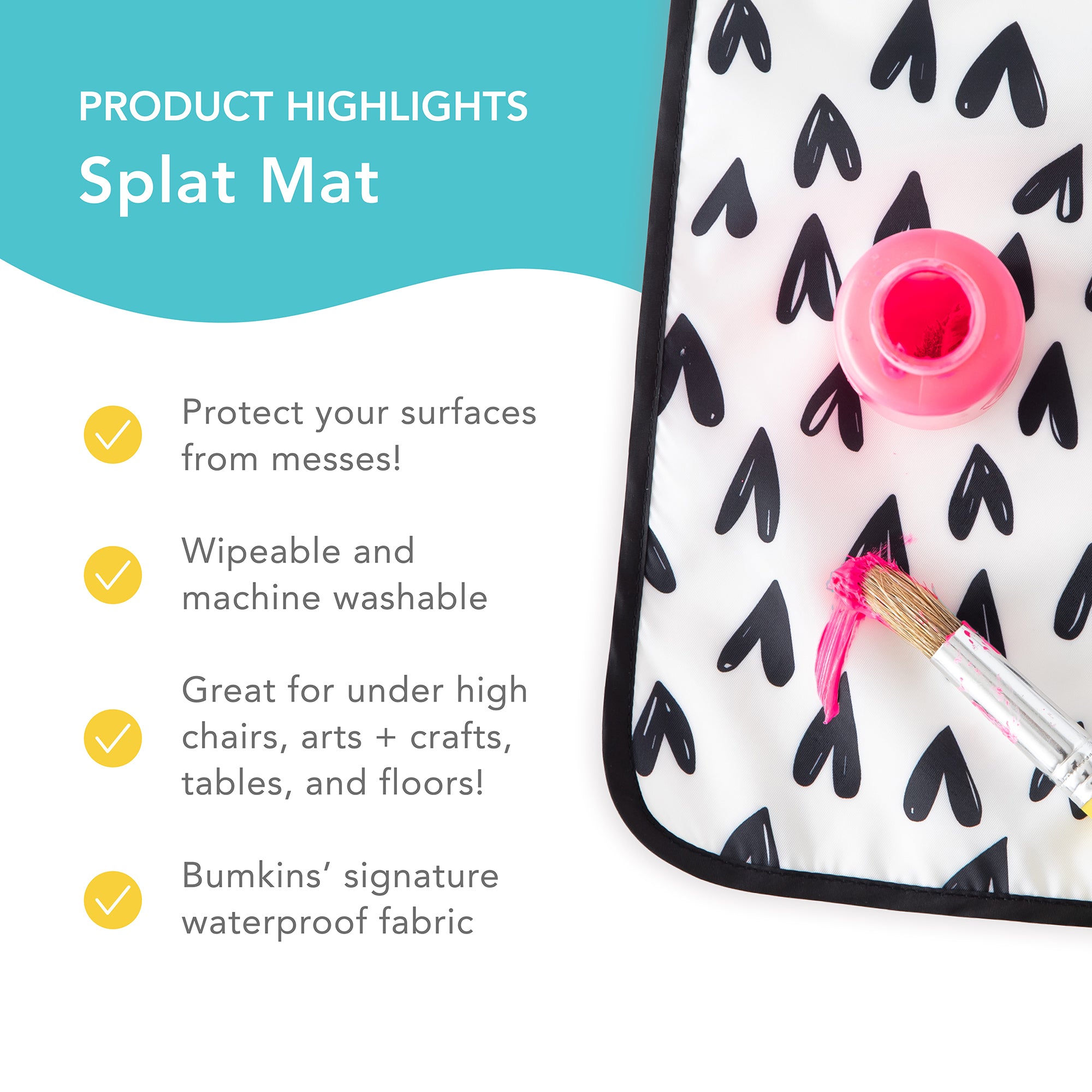 Keep your child from making messes with this splat mat that keeps floors and tabletops clean! Our splat mats are made to protect your floors and tables from mealtime spills and playtime messes. Not just for underneath highchairs. Use it on floors, on tables, or outside. And, it’s great for art projects. Made from the same easy-wipe waterproof and stain-resistant fabric as Bumkins’ award-winning SuperBib. The single-ply construction means no worrying about icky stuff growing between layers of fabric. A generous 107 x 107 cm yet lightweight, it takes up less space in your bag, so you can take it where you need it! Wipeable and machine washable for easy cleaning so you can use it over and over again!
