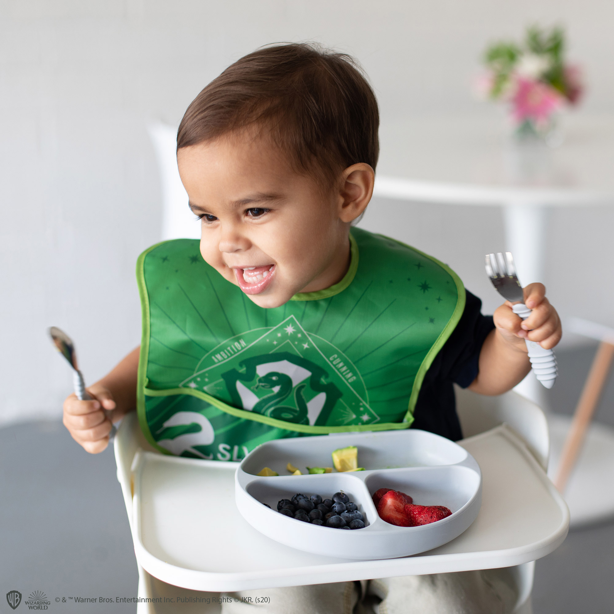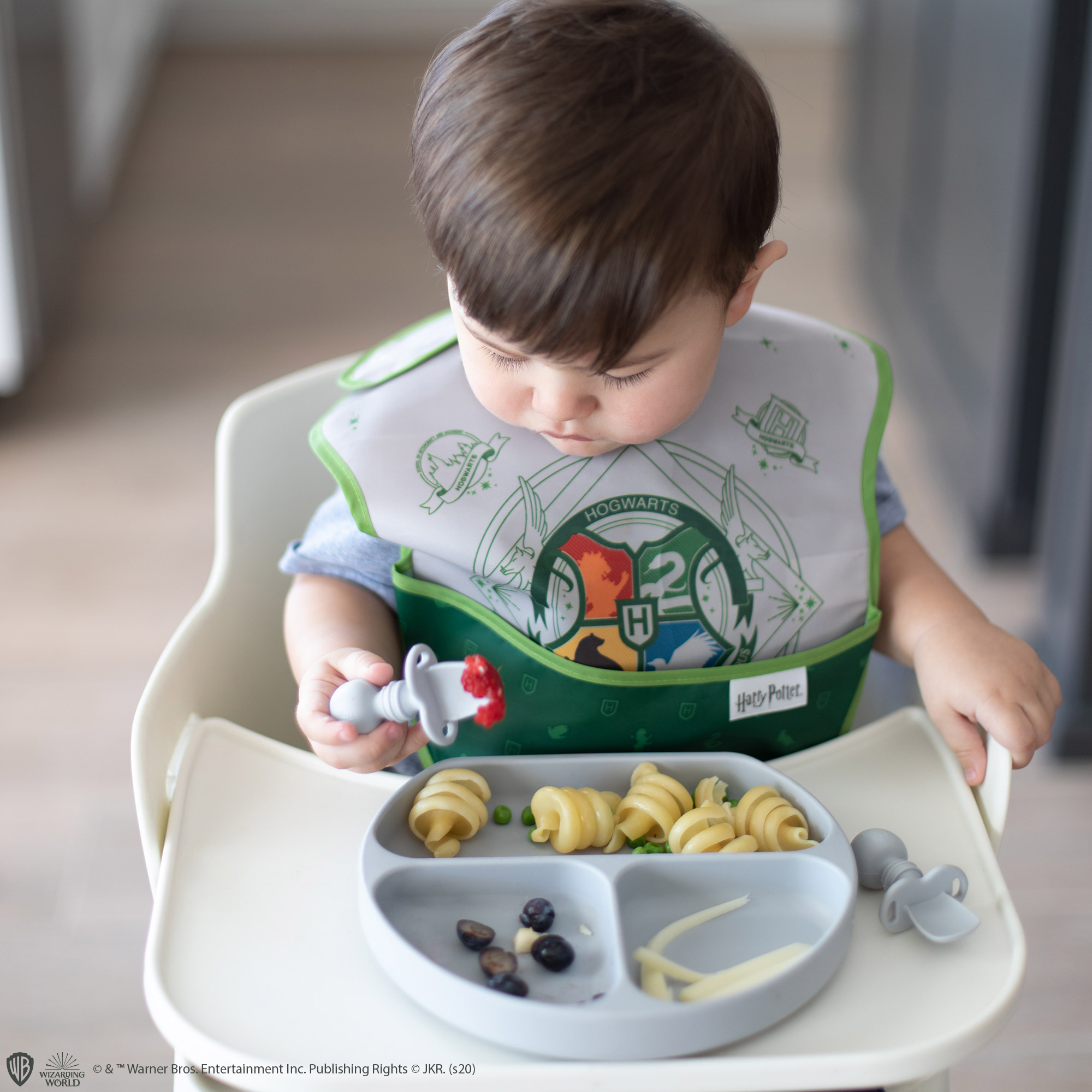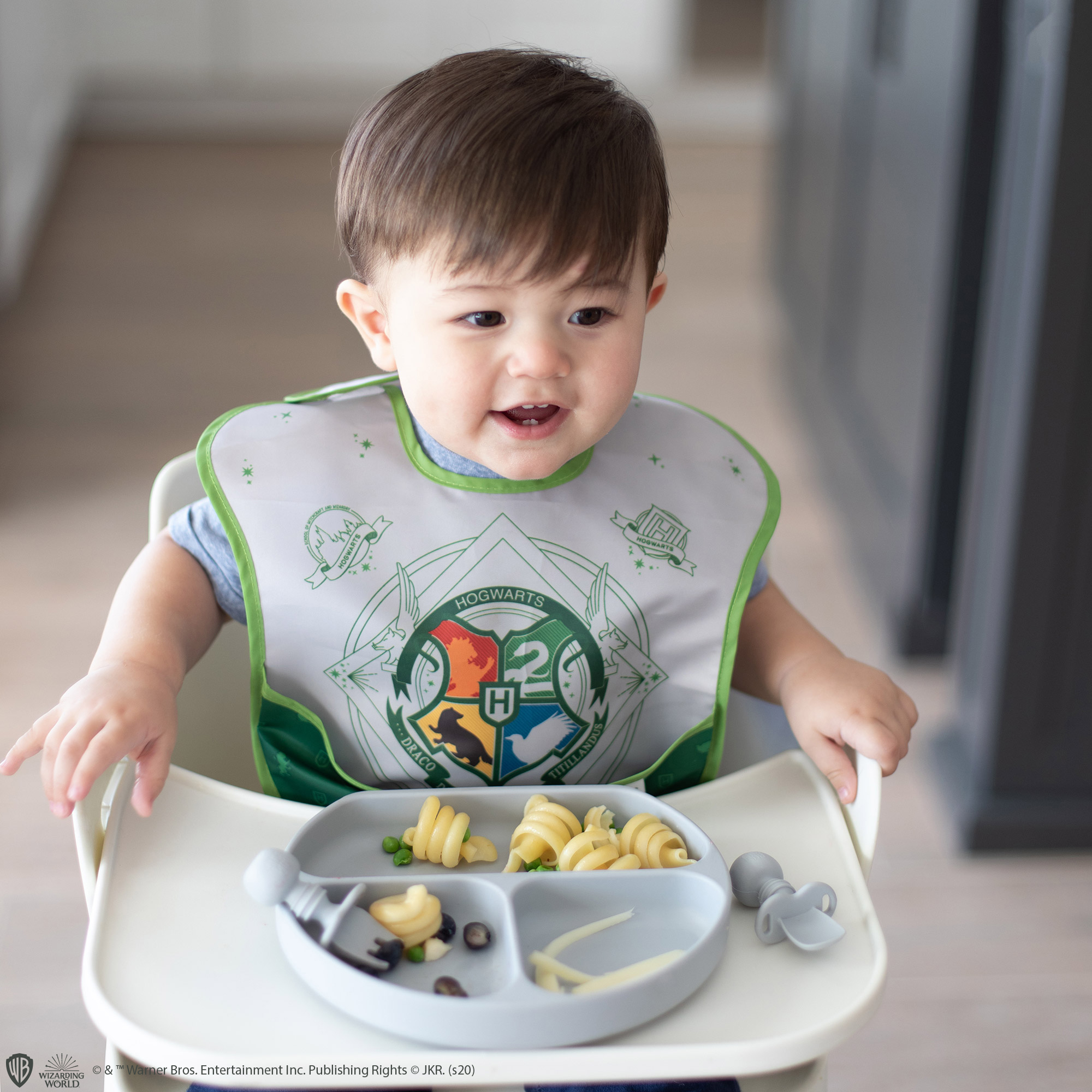 Our SuperBibs save you from the mess! The SuperBib attaches over the back of the shoulder with hook and loop closure for a quick, adjustable and tug-proof fit. With a handy crumb catcher / catch-all pocket for containing spills. Made from Bumkins lightweight, waterproof, easy-wipe, stain and odor resistant fabric. Single ply construction means no worrying about icky stuff growing between layers of fabric. Without a cotton layer, stains and smells don't stick. Wipeable and machine washable for easy cleaning so you can use it over and over again.