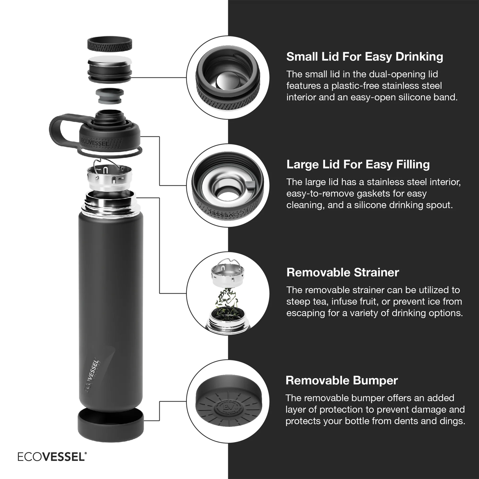 De Boulder is gemaakt voor alle avonturen in het leven – gemakkelijk mee te nemen, uit te drinken en te vullen. Je kunt erop vertrouwen dat hij dranken tot 60 uur koud of tot 12 uur warm houdt. Deze fles onderscheidt zich door een verwijderbare zeef die perfect is voor fruit, thee of ijs, een beschermende siliconen bumper en een veilige draagriem. Blijf gehydrateerd!