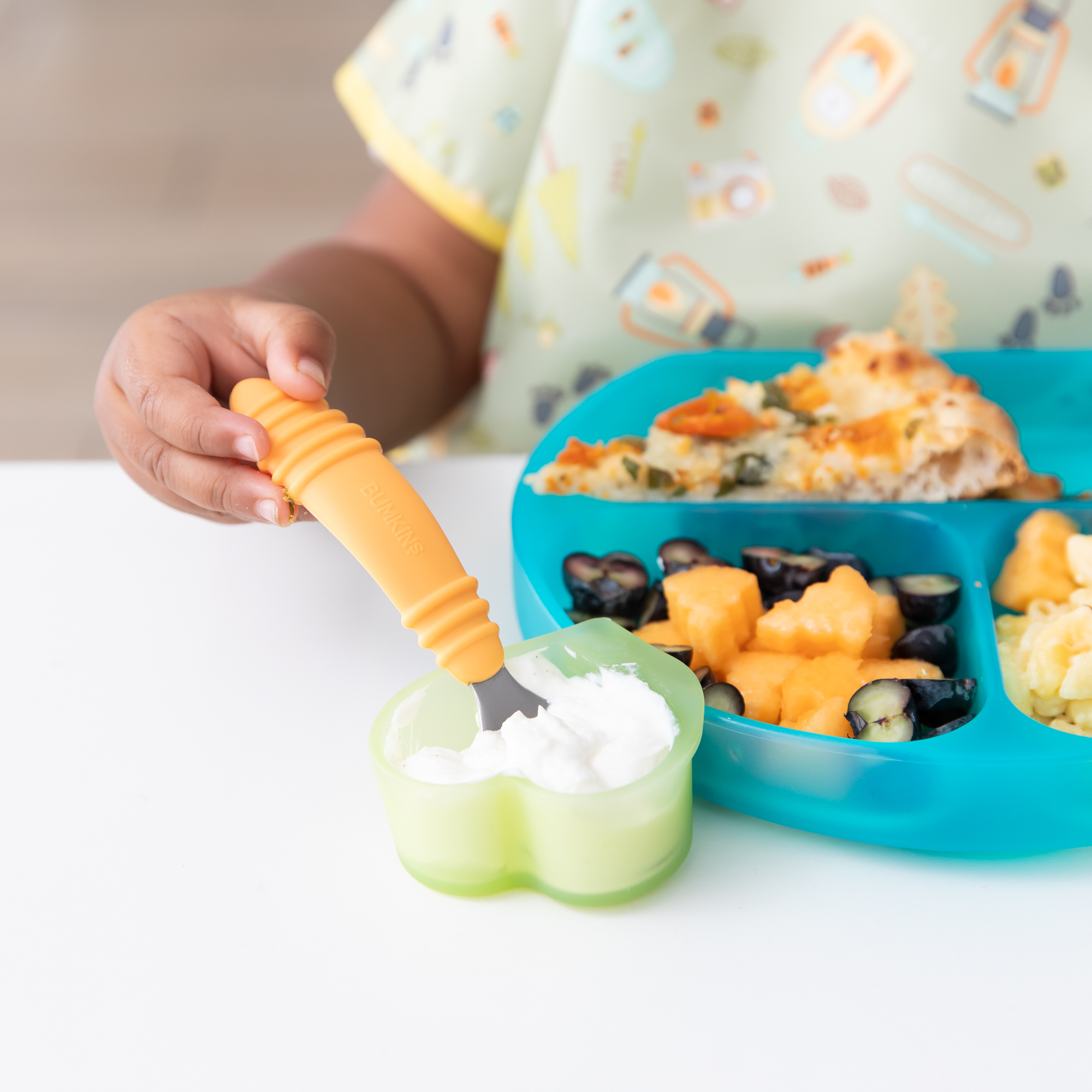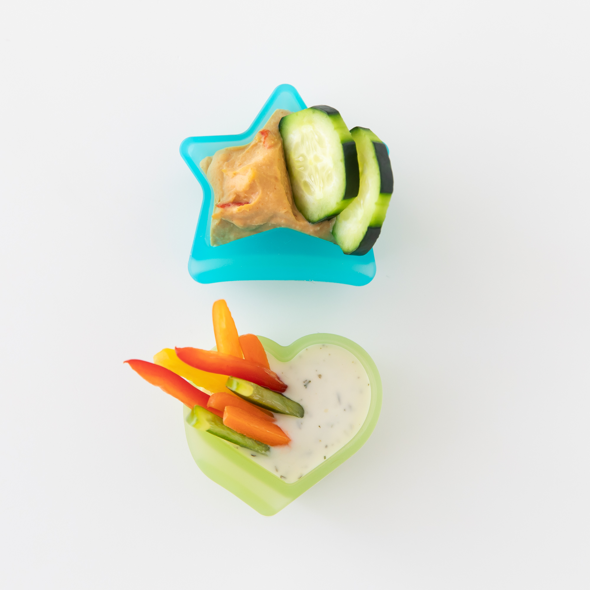 Categorie 3In alle openheid, we hebben onze sauzen het liefst aan de zijkant. Gebruik de Bumkins jelly siliconen dipsausbakjes om sauzen, dressing, kleine bijgerechten en purees aan de zijkant van ons servies en de meeste gerechten met randen te bevestigen, thuis of onderweg. Onze Jelly set is verkrijgbaar in twee leuke vormen en complementaire kleuren. De herbruikbare siliconen van voedselkwaliteit betekenen dat je ze kunt wassen en hergebruiken, waardoor je minder papier of plastic bakjes hoeft te gebruiken. Dip baby, dip!