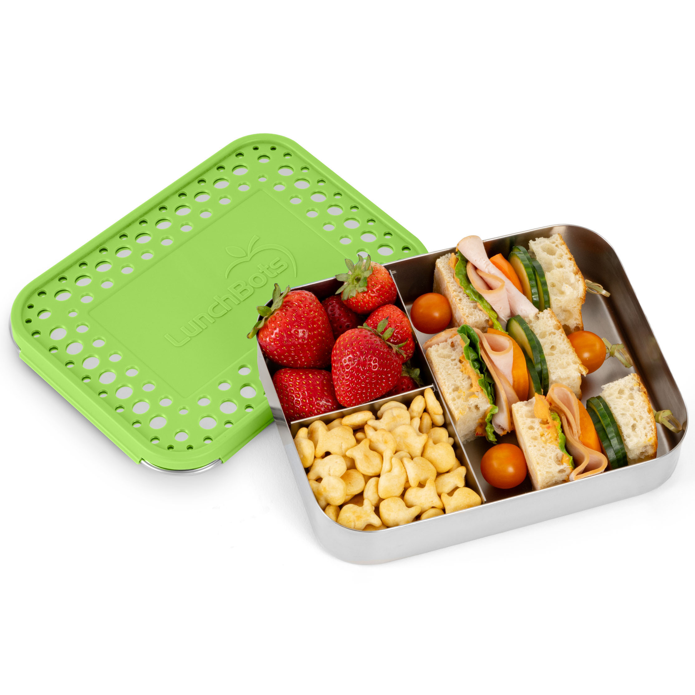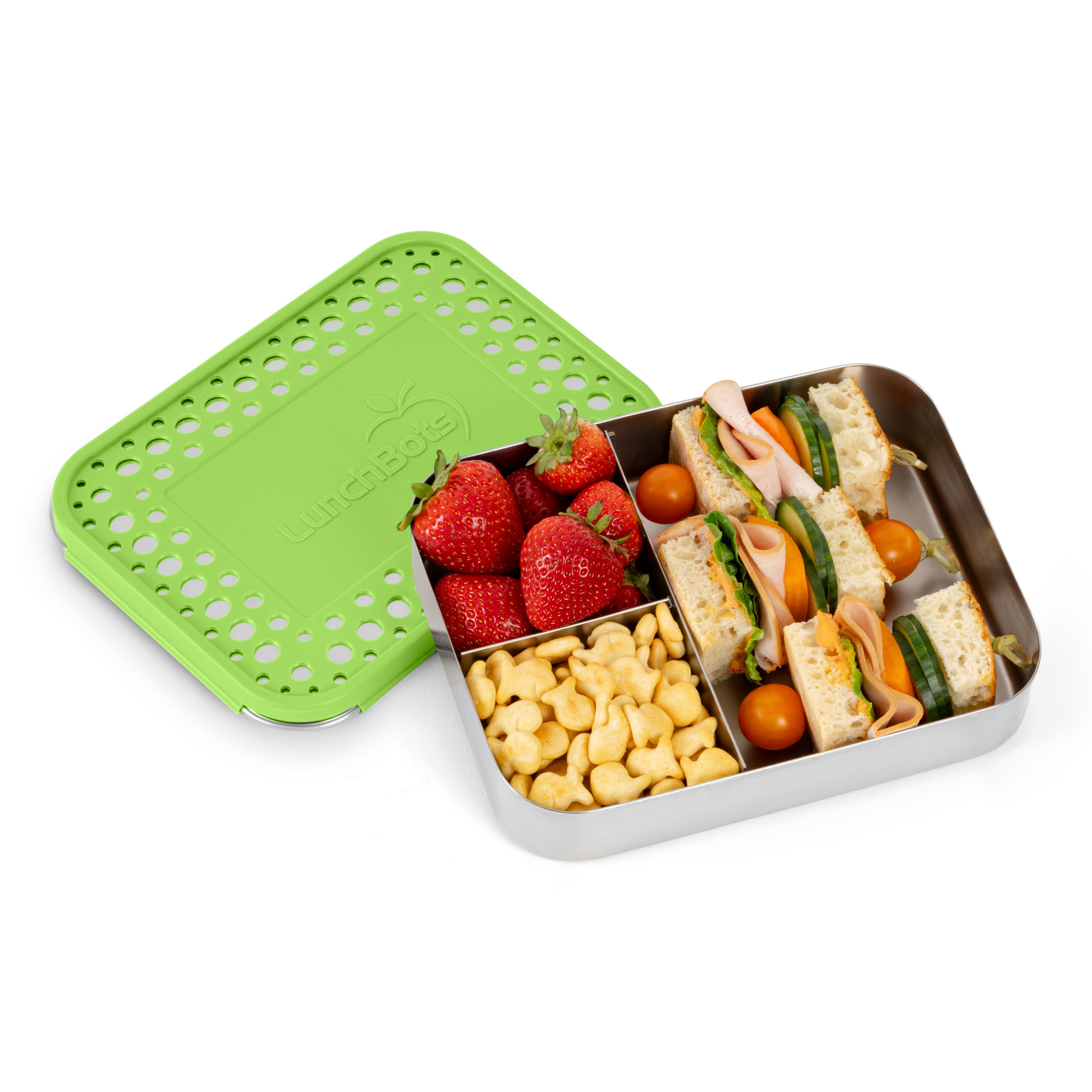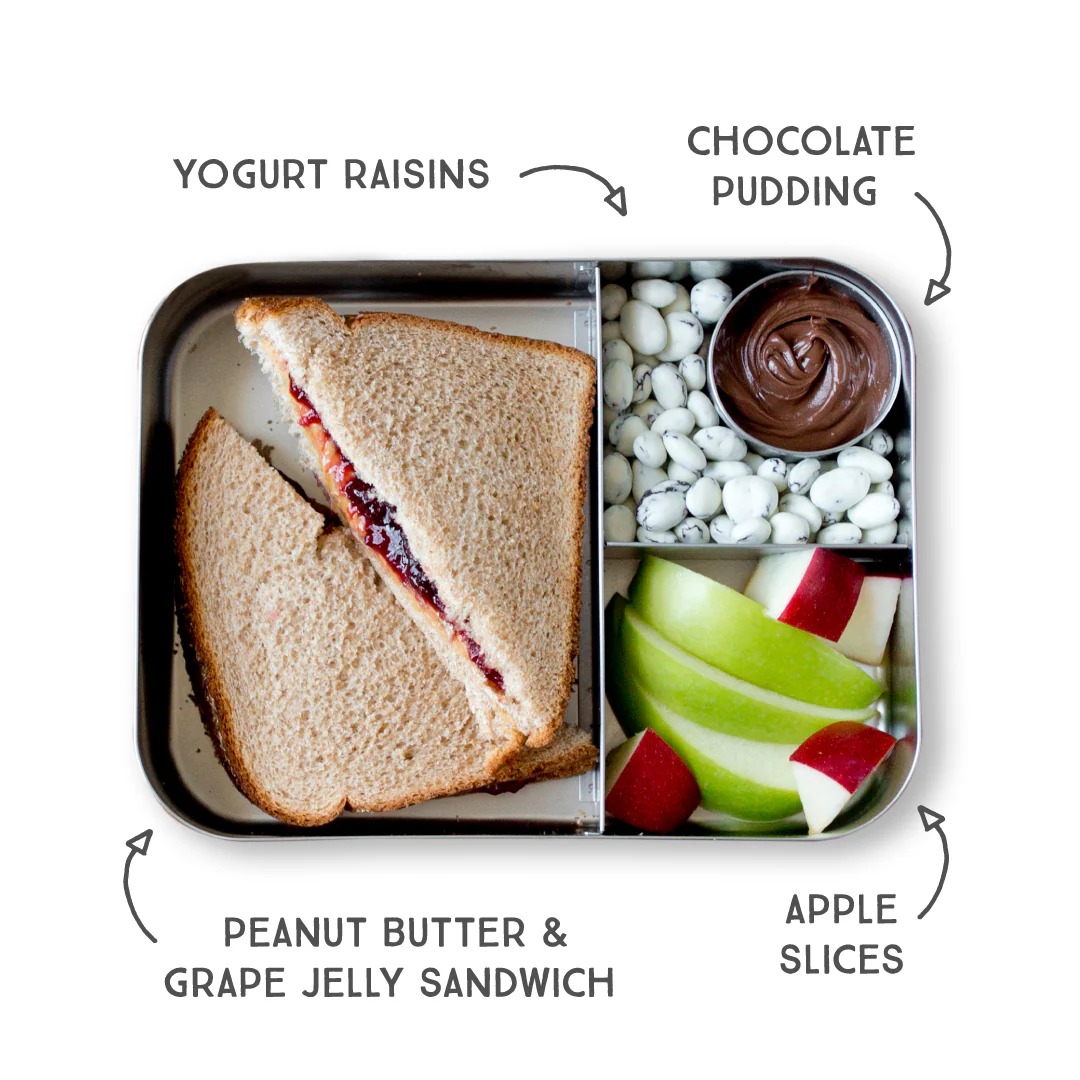 Deze ruime roestvrijstalen bentobox met 3 compartimenten is ontworpen voor een volledige sandwich en twee bijgerechten. Broodjesfans van alle leeftijden zijn dol op de Large Trio omdat er in deze ene verpakking genoeg ruimte is voor een hele lunch.