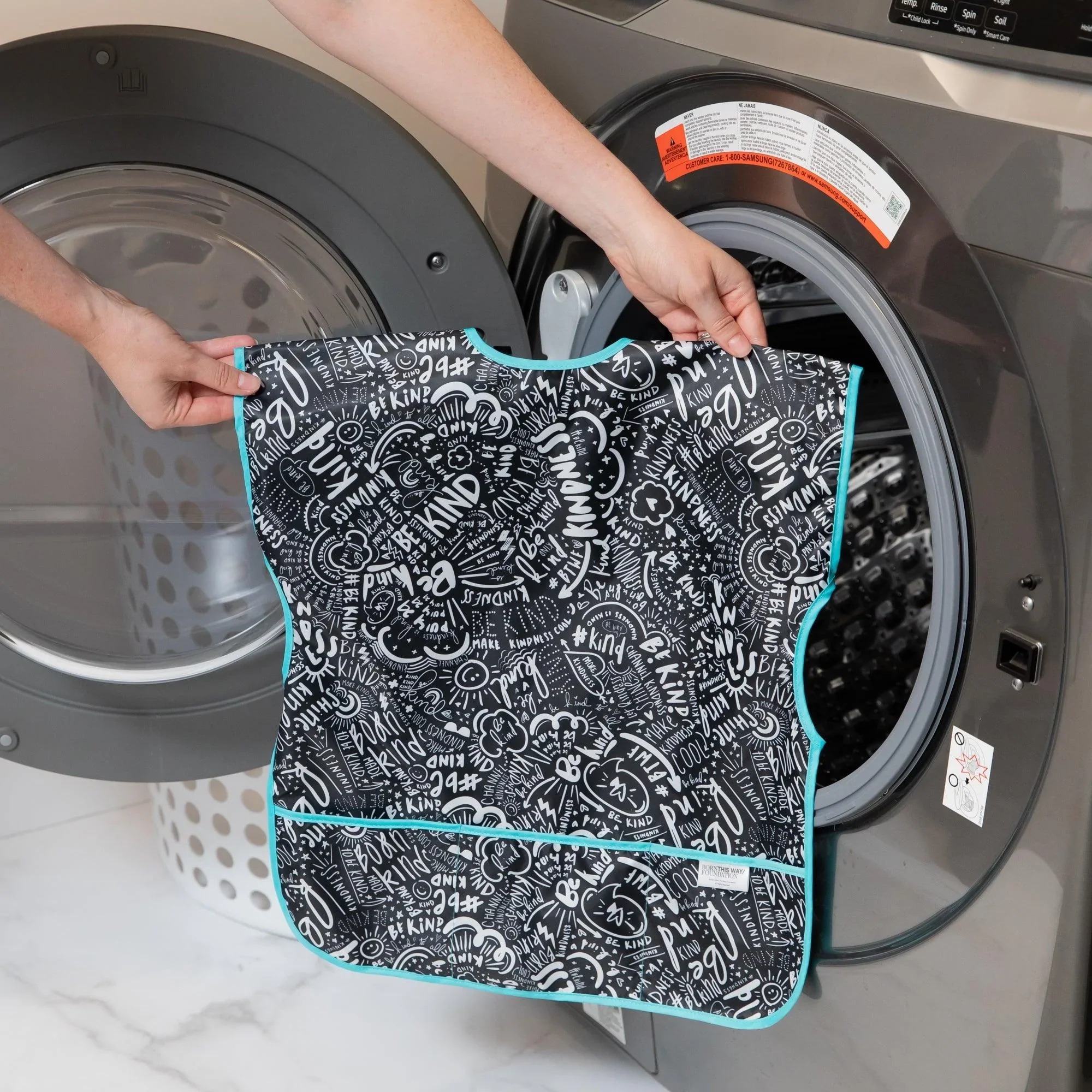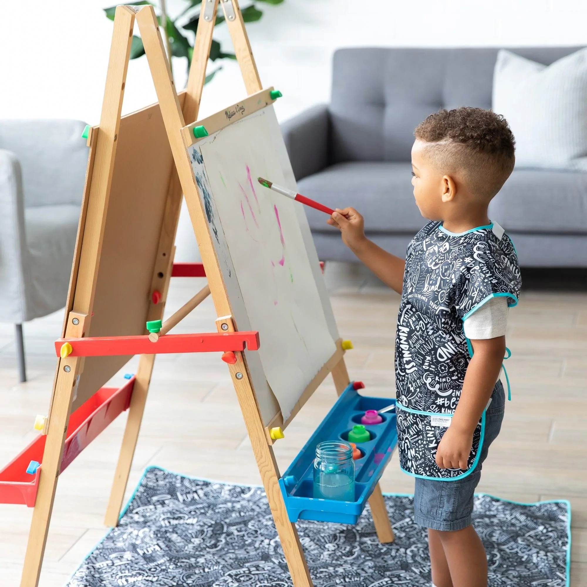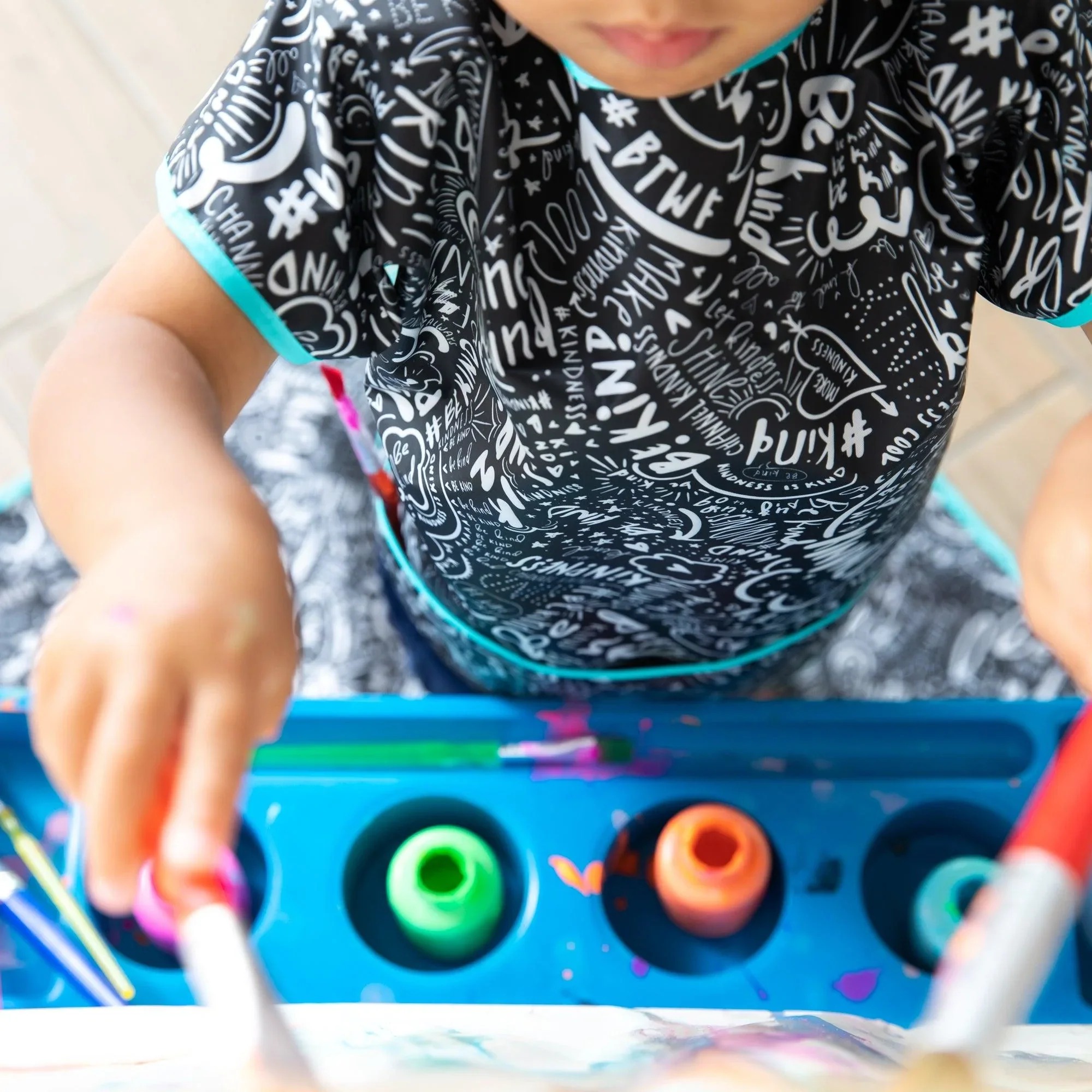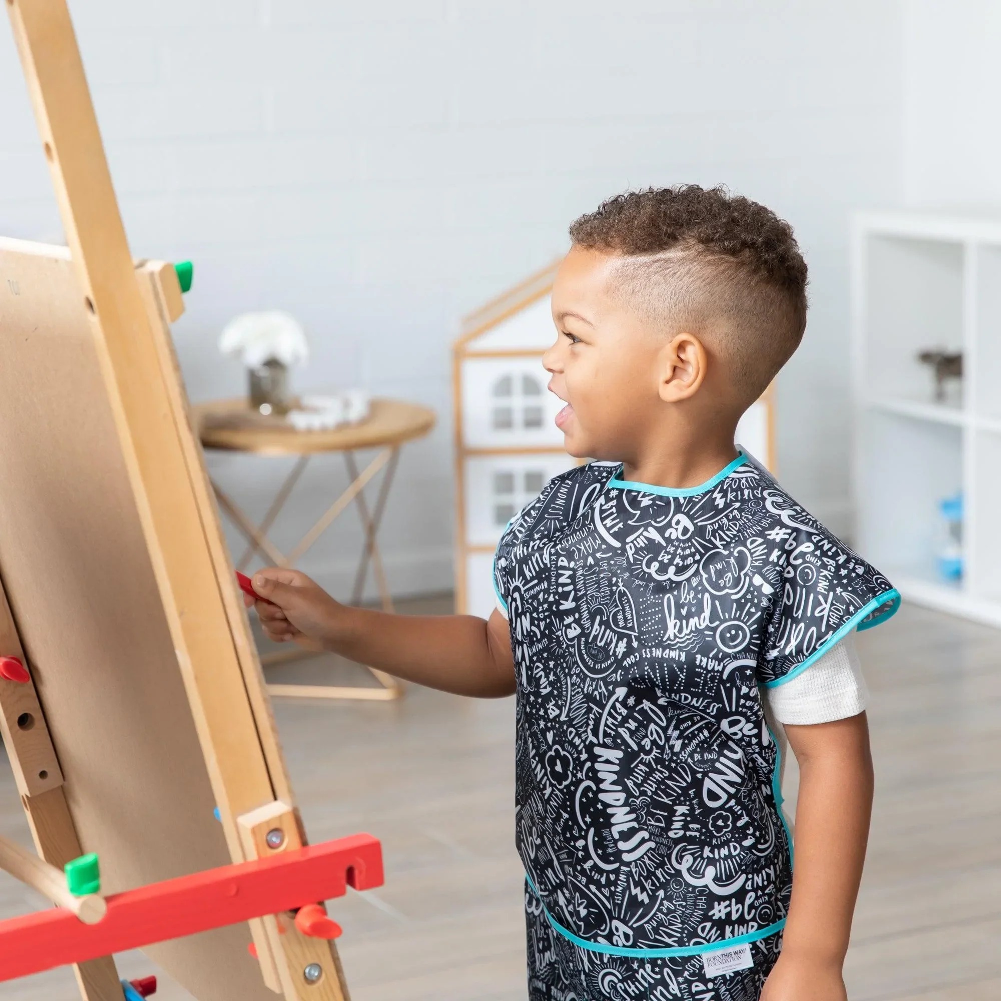Het schilderschort met korte mouwen is perfect voor je ontluikende kunstenaar en voorkomt dat er vlekken op je kleding komen. Het kan ook gebruikt worden als slabbetje voor rommelige eters die ons Junior Slabbetje ontgroeid zijn. Met een zak die groot genoeg is voor kunstbenodigdheden of om druppels en morsen op te vangen. Gemaakt van Bumkins lichtgewicht, waterdichte, makkelijk afveegbare, vlek- en geurbestendige stof. Dankzij de eenlaagse constructie hoef je je geen zorgen te maken over vieze dingen die tussen de lagen stof groeien. Zonder katoenen laag blijven vlekken en geurtjes niet plakken. Afveegbaar en machinewasbaar voor eenvoudig schoonmaken zodat je hem keer op keer kunt gebruiken! Verstelbaar bandje in de taille en een klittenbandsluiting in de nek.