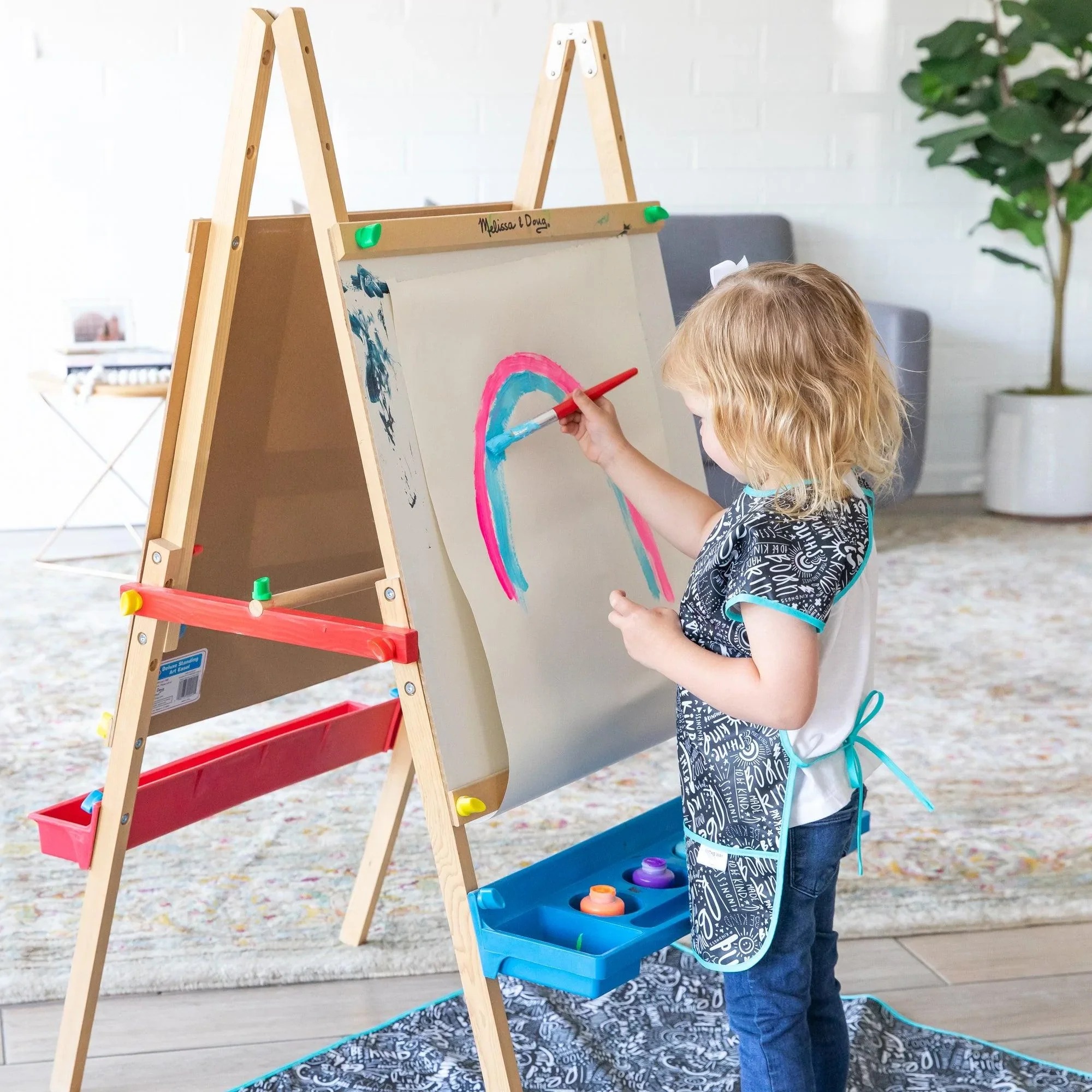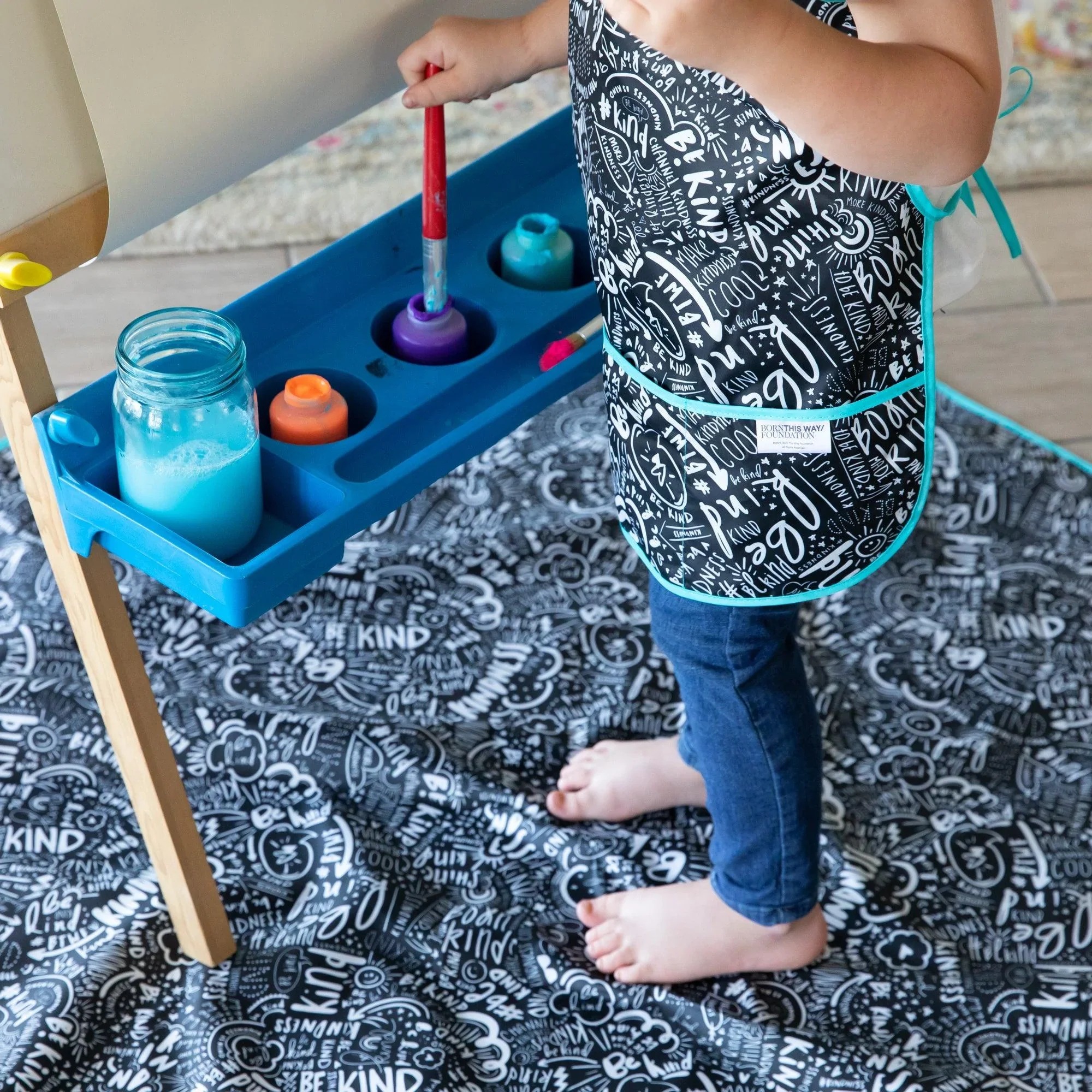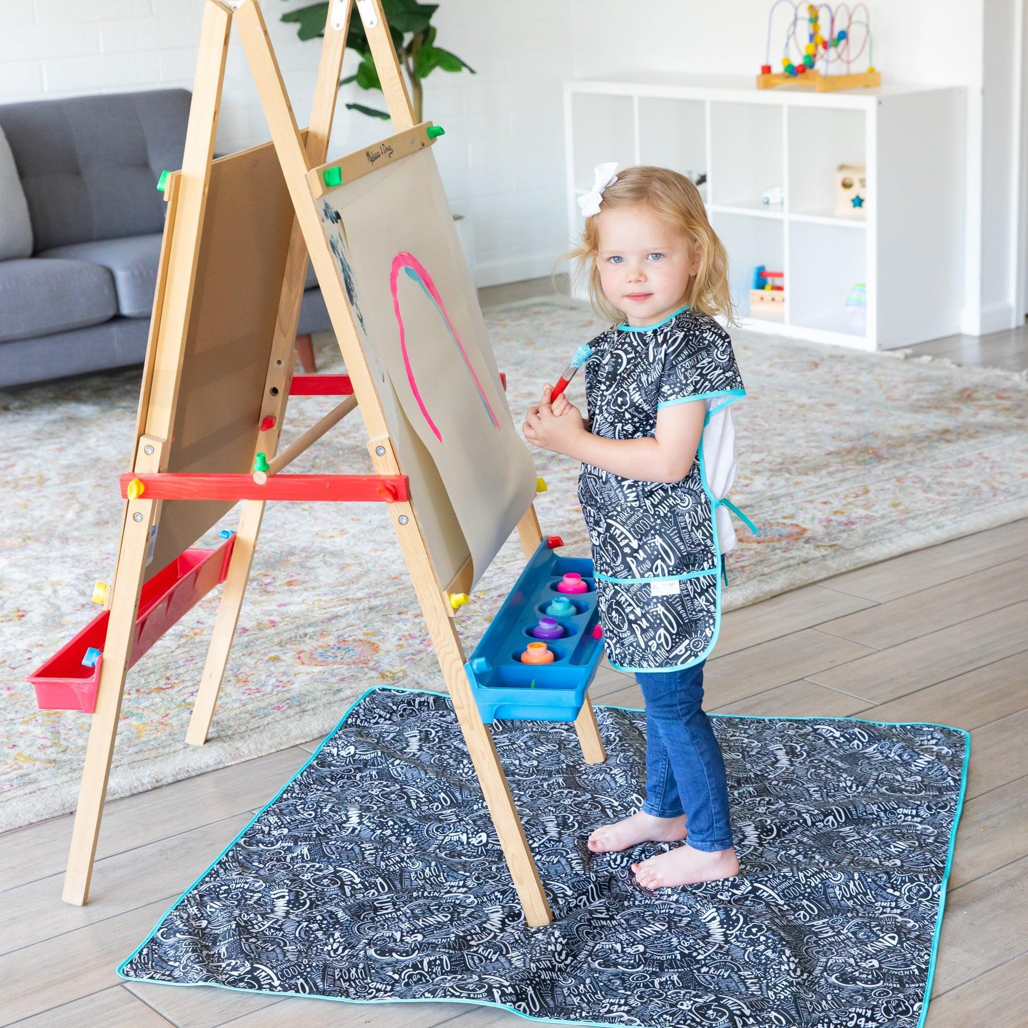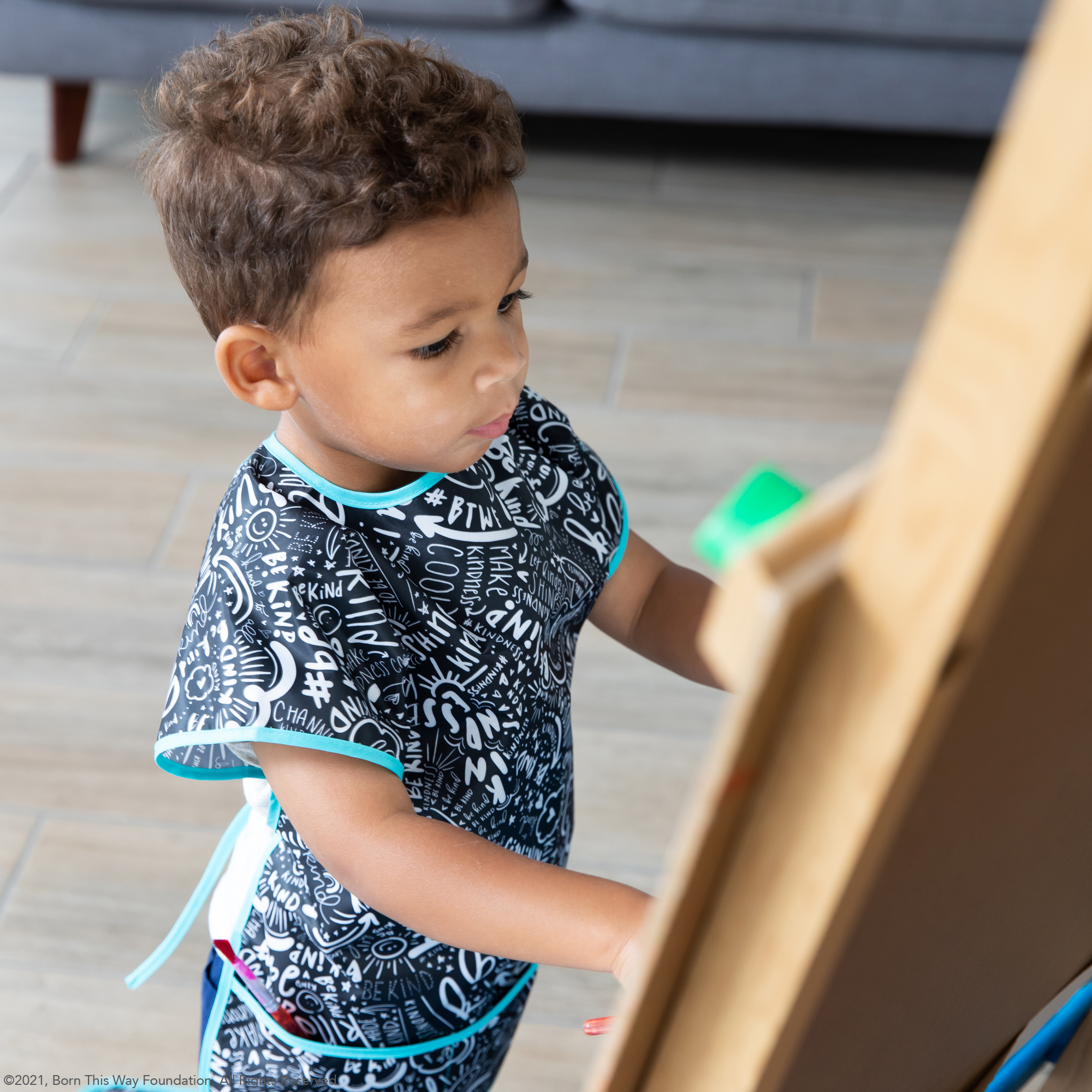 Het schilderschort met korte mouwen is perfect voor je ontluikende kunstenaar en voorkomt dat er vlekken op je kleding komen. Het kan ook gebruikt worden als slabbetje voor rommelige eters die ons Junior Slabbetje ontgroeid zijn. Met een zak die groot genoeg is voor kunstbenodigdheden of om druppels en morsen op te vangen. Gemaakt van Bumkins lichtgewicht, waterdichte, makkelijk afveegbare, vlek- en geurbestendige stof. Dankzij de eenlaagse constructie hoef je je geen zorgen te maken over vieze dingen die tussen de lagen stof groeien. Zonder katoenen laag blijven vlekken en geurtjes niet plakken. Afveegbaar en machinewasbaar voor eenvoudig schoonmaken zodat je hem keer op keer kunt gebruiken! Verstelbaar bandje in de taille en een klittenbandsluiting in de nek.