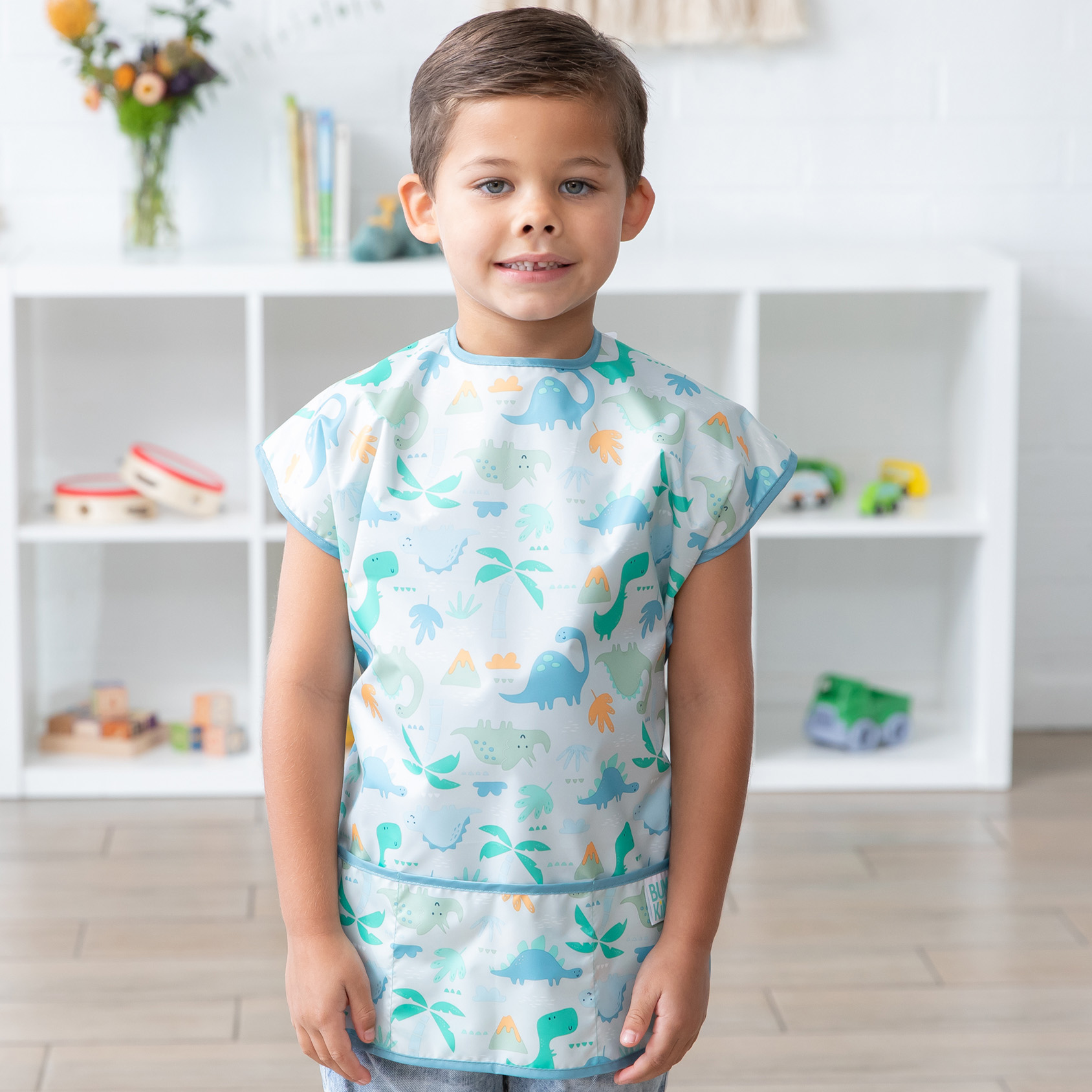 Het schilderschort met korte mouwen is perfect voor je ontluikende kunstenaar en voorkomt dat er vlekken op je kleding komen. Het kan ook gebruikt worden als slabbetje voor rommelige eters die ons Junior Slabbetje ontgroeid zijn. Met een zak die groot genoeg is voor kunstbenodigdheden of om druppels en morsen op te vangen. Gemaakt van Bumkins lichtgewicht, waterdichte, makkelijk afveegbare, vlek- en geurbestendige stof. Dankzij de eenlaagse constructie hoef je je geen zorgen te maken over vieze dingen die tussen de lagen stof groeien. Zonder katoenen laag blijven vlekken en geurtjes niet plakken. Afveegbaar en machinewasbaar voor eenvoudig schoonmaken zodat je hem keer op keer kunt gebruiken! Verstelbaar bandje in de taille en een klittenbandsluiting in de nek.