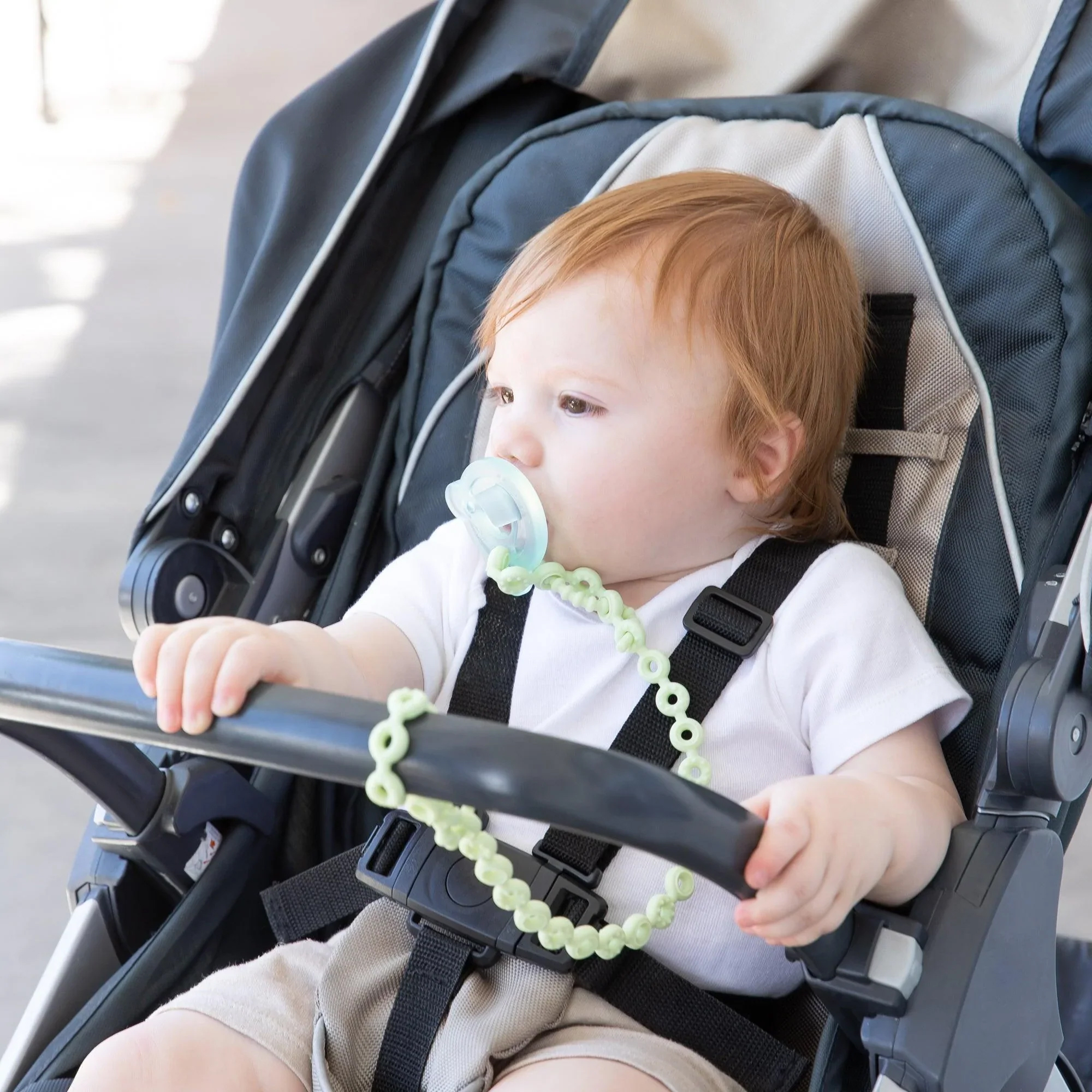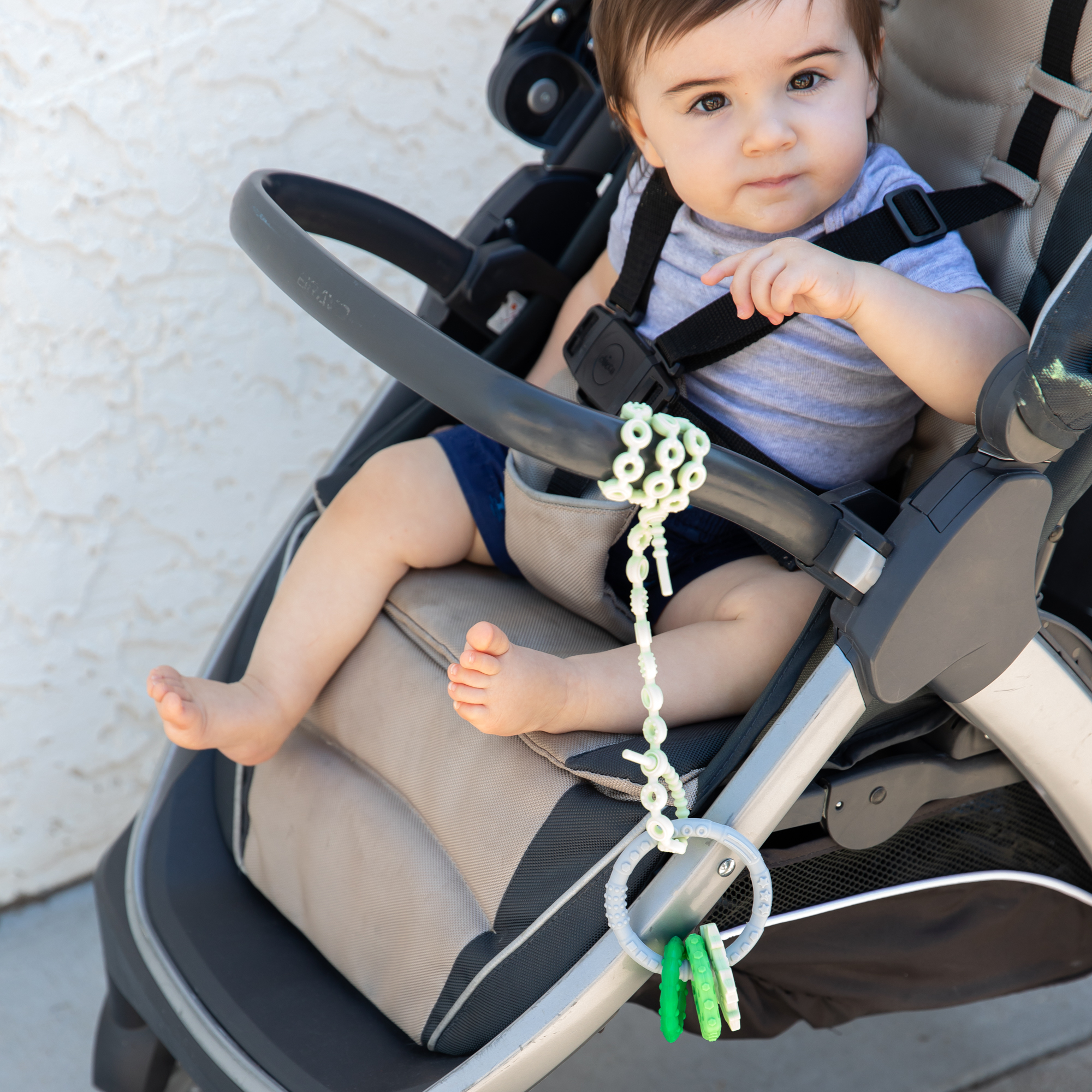 - Loop utensils or toys through the end to keep them from hitting the floor