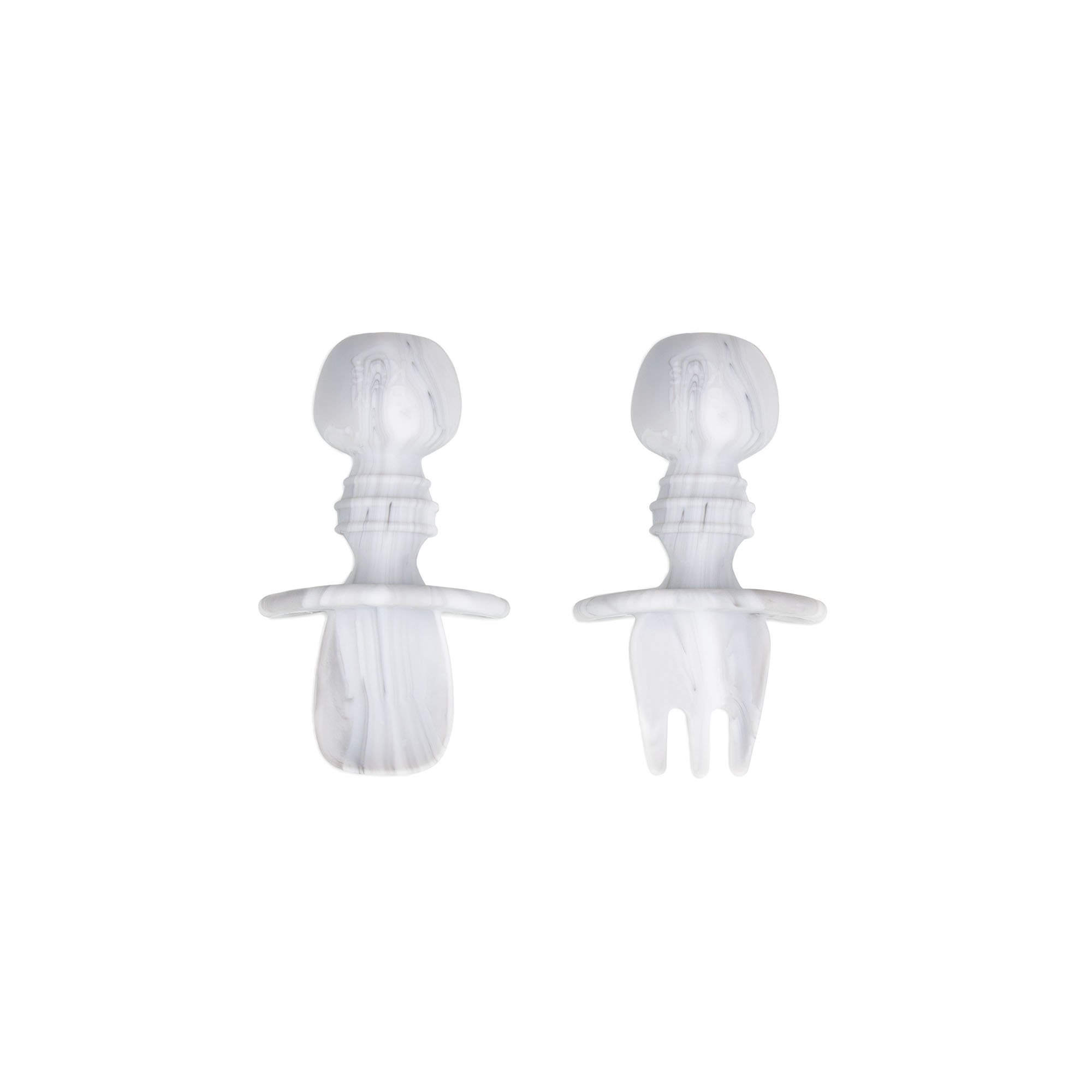 Chewtensils zijn bedoeld voor baby's voordat ze zelf kunnen eten (het beste voor dippen en scheppen, nog niet voor het prikken van vast voedsel). Laat uw kind niet zonder toezicht achter met Chewtensils. Gooi weg als het beschadigd of gescheurd is.