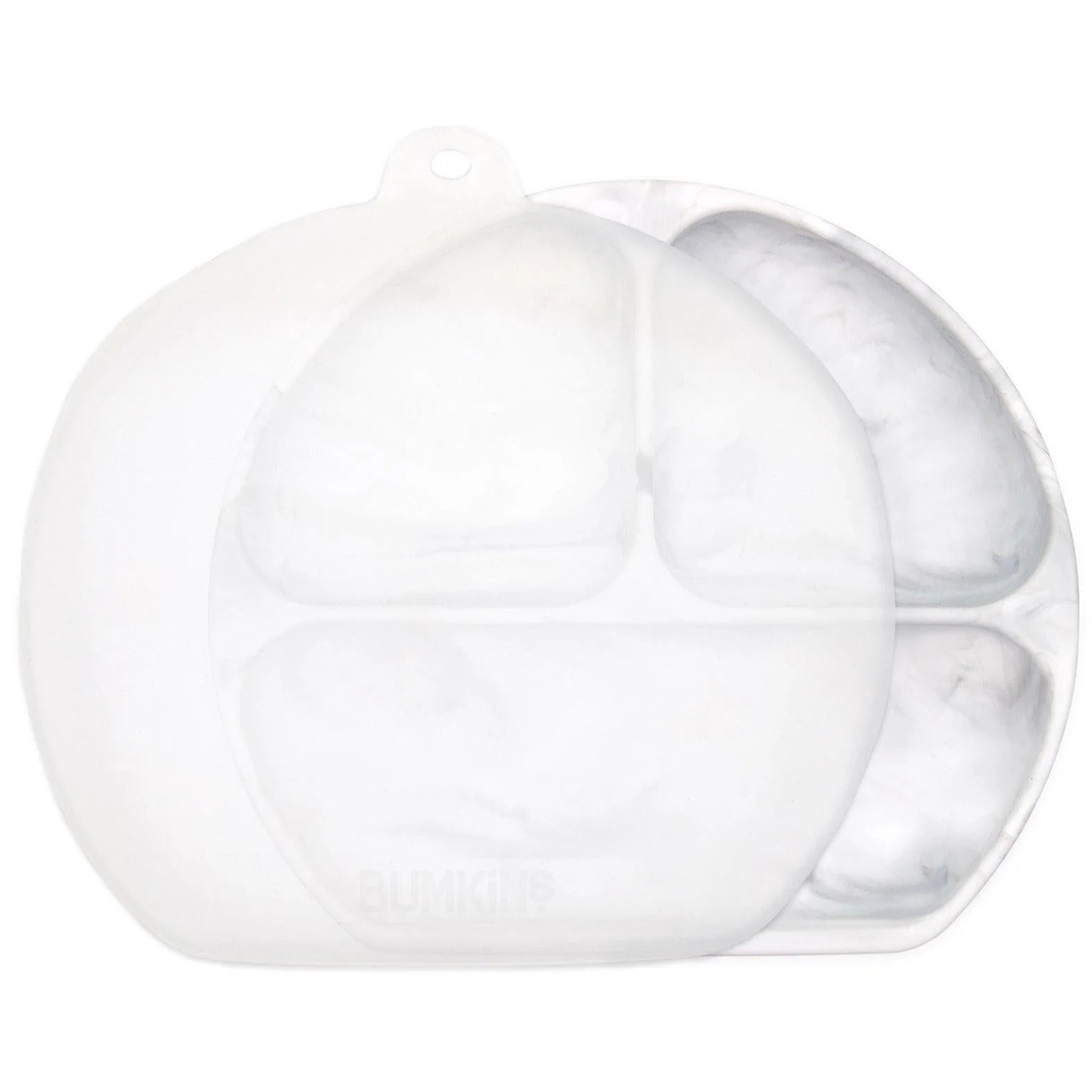 Siliconen vakjesbord met deksel (3 vaks) - Marmer