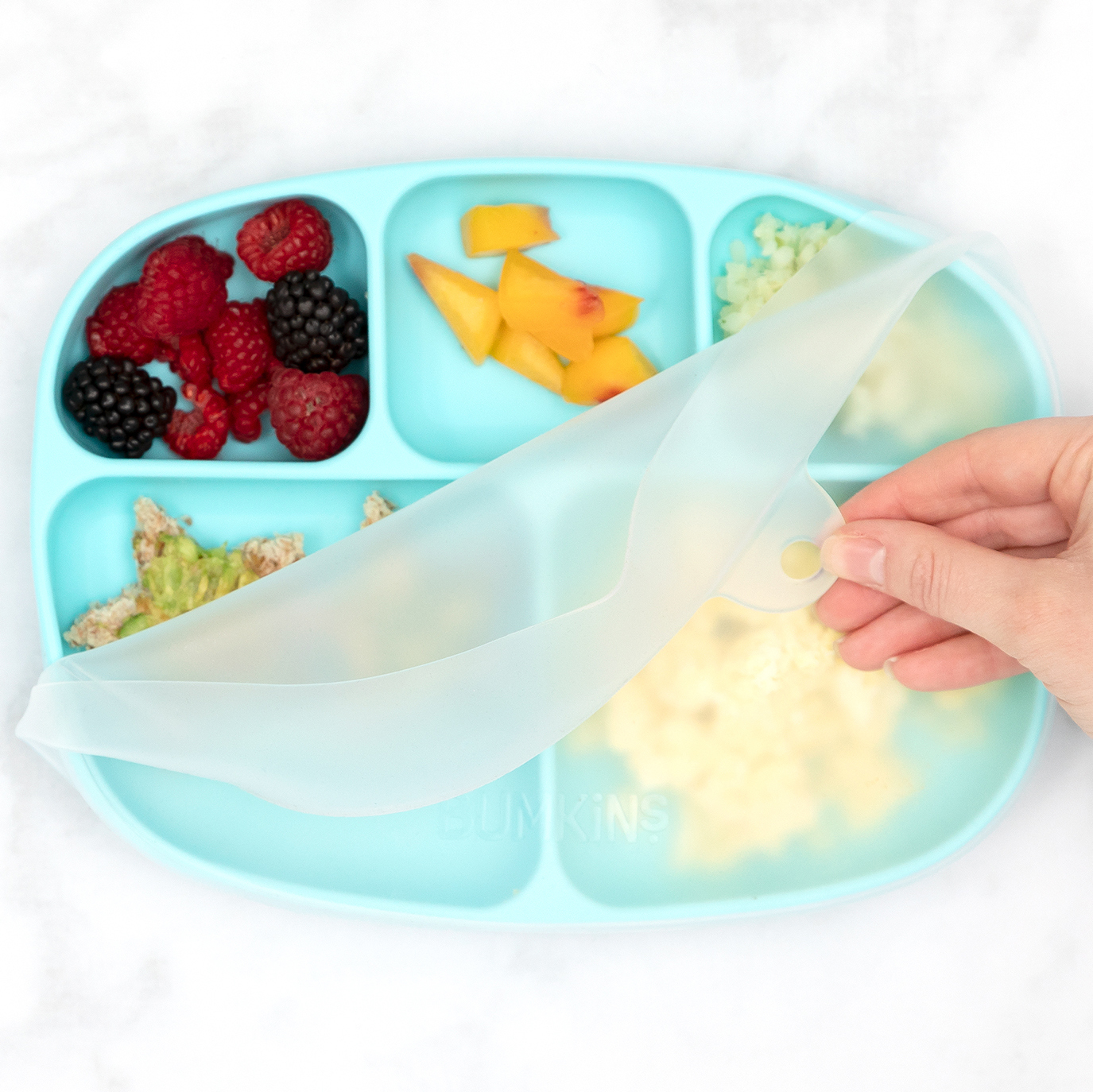 Met een lekvrij deksel is het geweldig voor het bewaren van restjes of het voorbereiden van maaltijden! Schrijf op het deksel om restjes te labelen - gebruik een afwasbare droge of natte markeerstift. Het bord is gemaakt van 100% voedselveilig siliconen en is net zo duurzaam en veelzijdig als de originele versie, alleen met extra vakken voor meer eetplezier. Perfect formaat voor peuterporties, allemaal met diepe randen om het eten te helpen vasthouden. Het vakjesbord kan veilig in de magnetron, oven (tot 204°C), vriezer of vaatwasser. Een sterke zuignap houdt het vakjesbord op zijn plaats, waardoor borden op de vloer tot het verleden behoren!