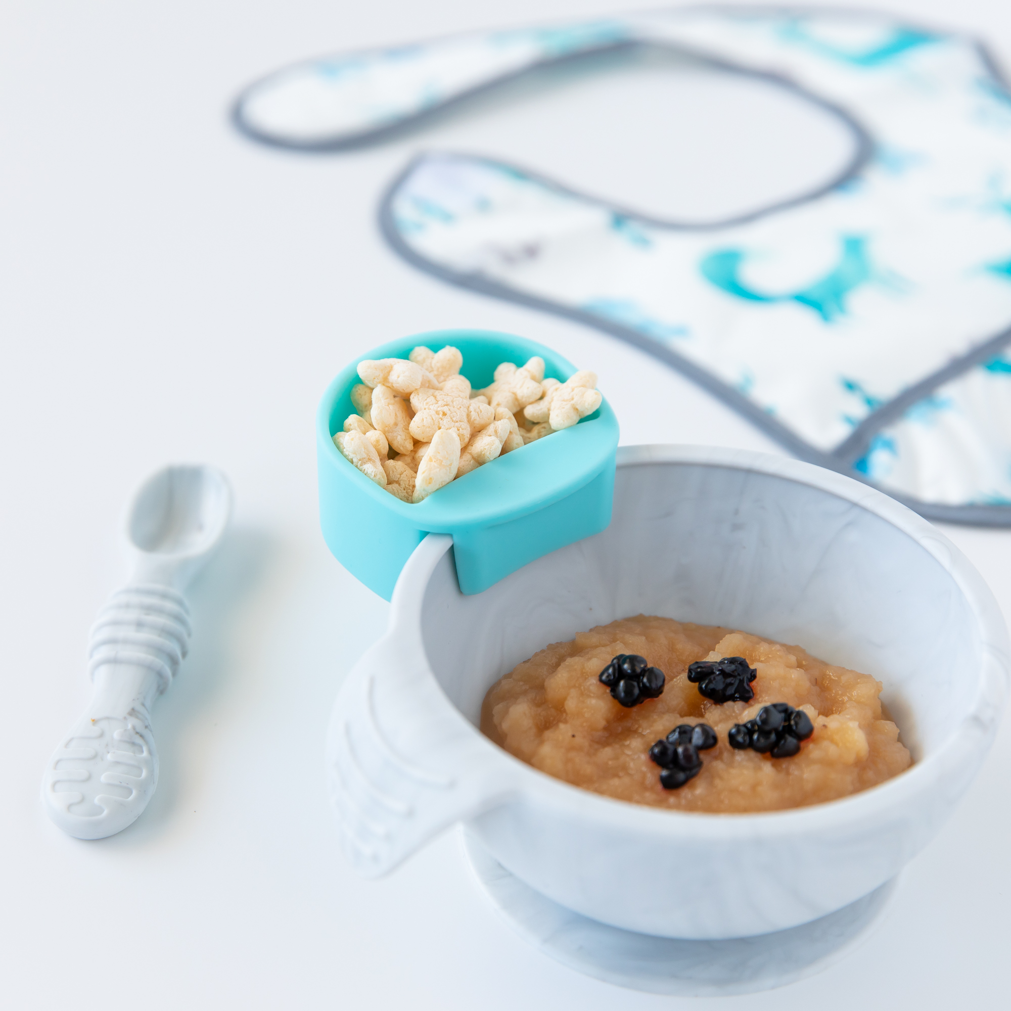 - Te bevestigen aan de rand van onze siliconen kommen, borden en bakjes