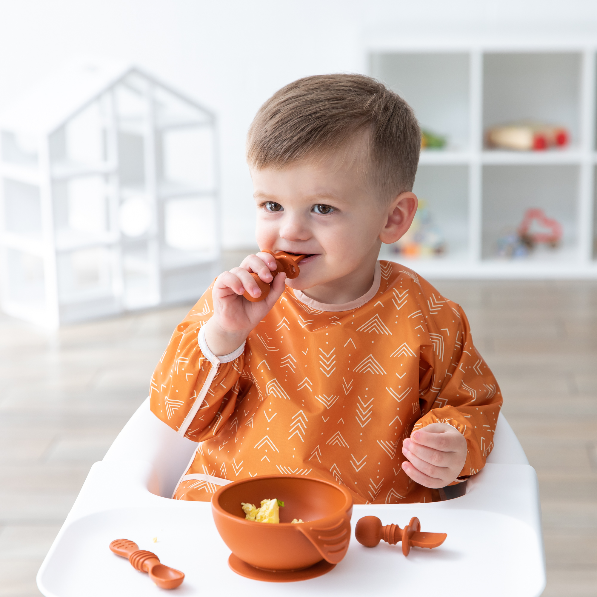 Het slabbetje met mouw is ruim bemeten en ideaal voor babyvoeding. Het is gemaakt van de lichtgewicht, duurzame, waterbestendige stof van Bumkins die vlekken en geurtjes tegengaat. Met maar één laag stof hoef je je geen zorgen te maken dat er vieze dingen tussen de lagen groeien. Pas de pasvorm aan je kleintje aan met een striksluiting aan de achterkant en elastische manchetten. Een groot opvangbakje helpt morsen, kruimels en nog veel meer op te vangen. Afveegbaar en machinewasbaar voor eenvoudig schoonmaken, zodat je hem keer op keer kunt gebruiken!