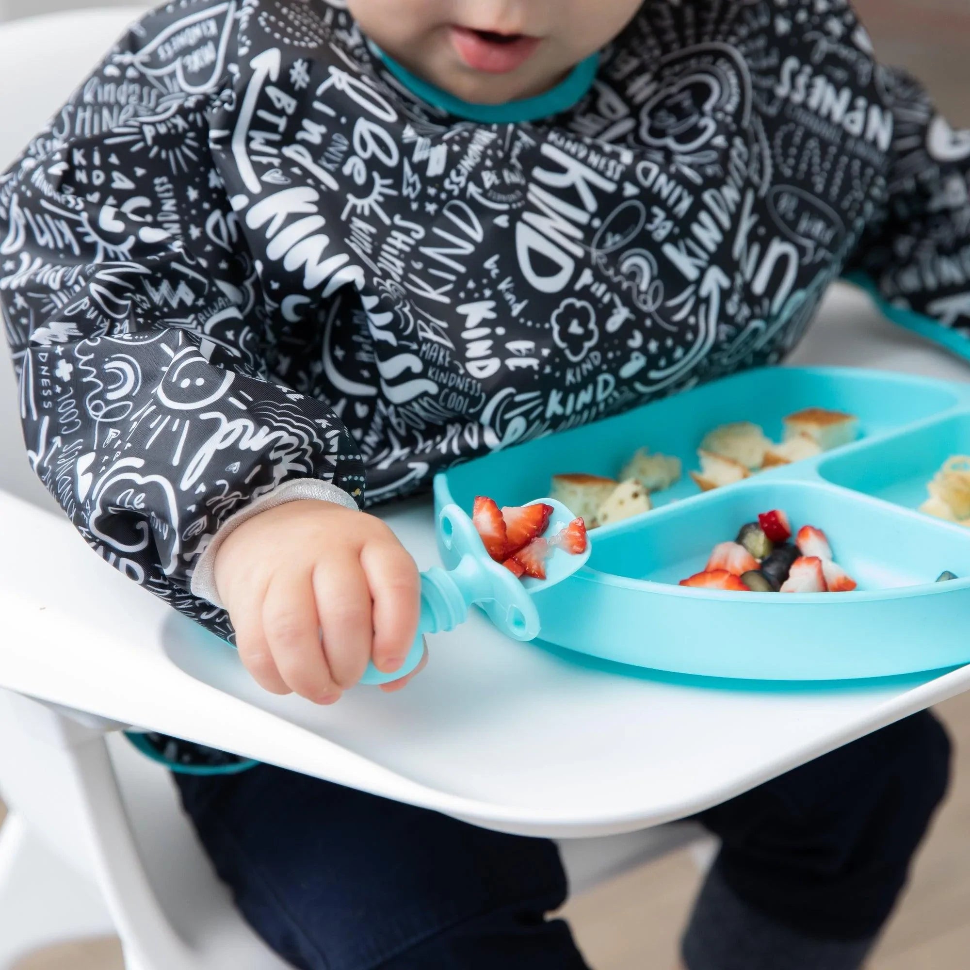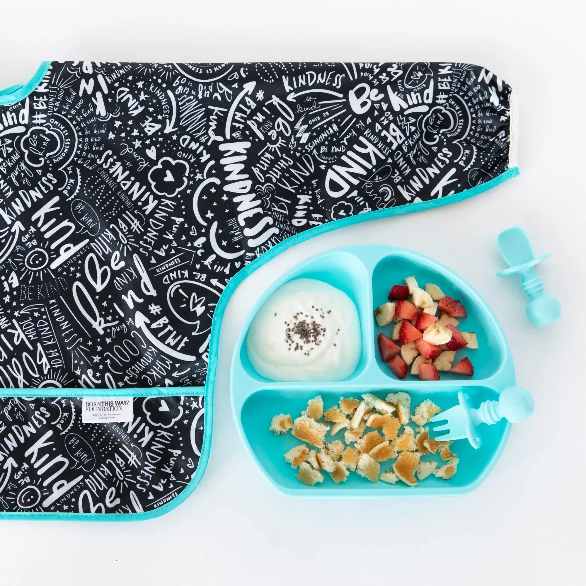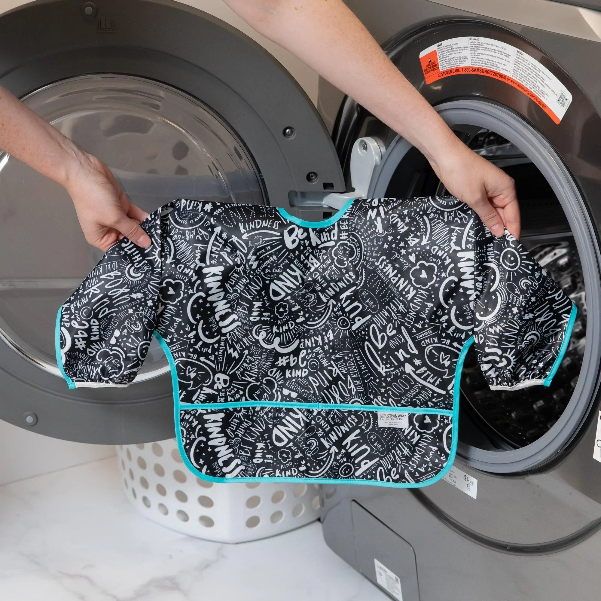 Het slabbetje met mouw is ruim bemeten en ideaal voor babyvoeding. Het is gemaakt van de lichtgewicht, duurzame, waterbestendige stof van Bumkins die vlekken en geurtjes tegengaat. Met maar één laag stof hoef je je geen zorgen te maken dat er vieze dingen tussen de lagen groeien. Pas de pasvorm aan je kleintje aan met een striksluiting aan de achterkant en elastische manchetten. Een groot opvangbakje helpt morsen, kruimels en nog veel meer op te vangen. Afveegbaar en machinewasbaar voor eenvoudig schoonmaken, zodat je hem keer op keer kunt gebruiken!