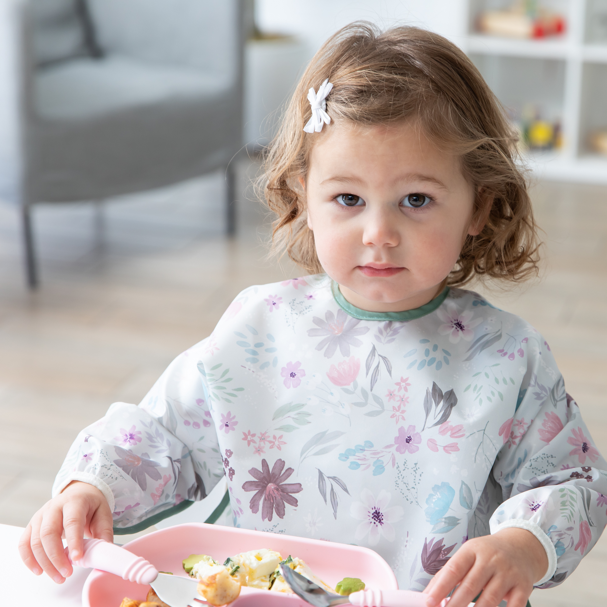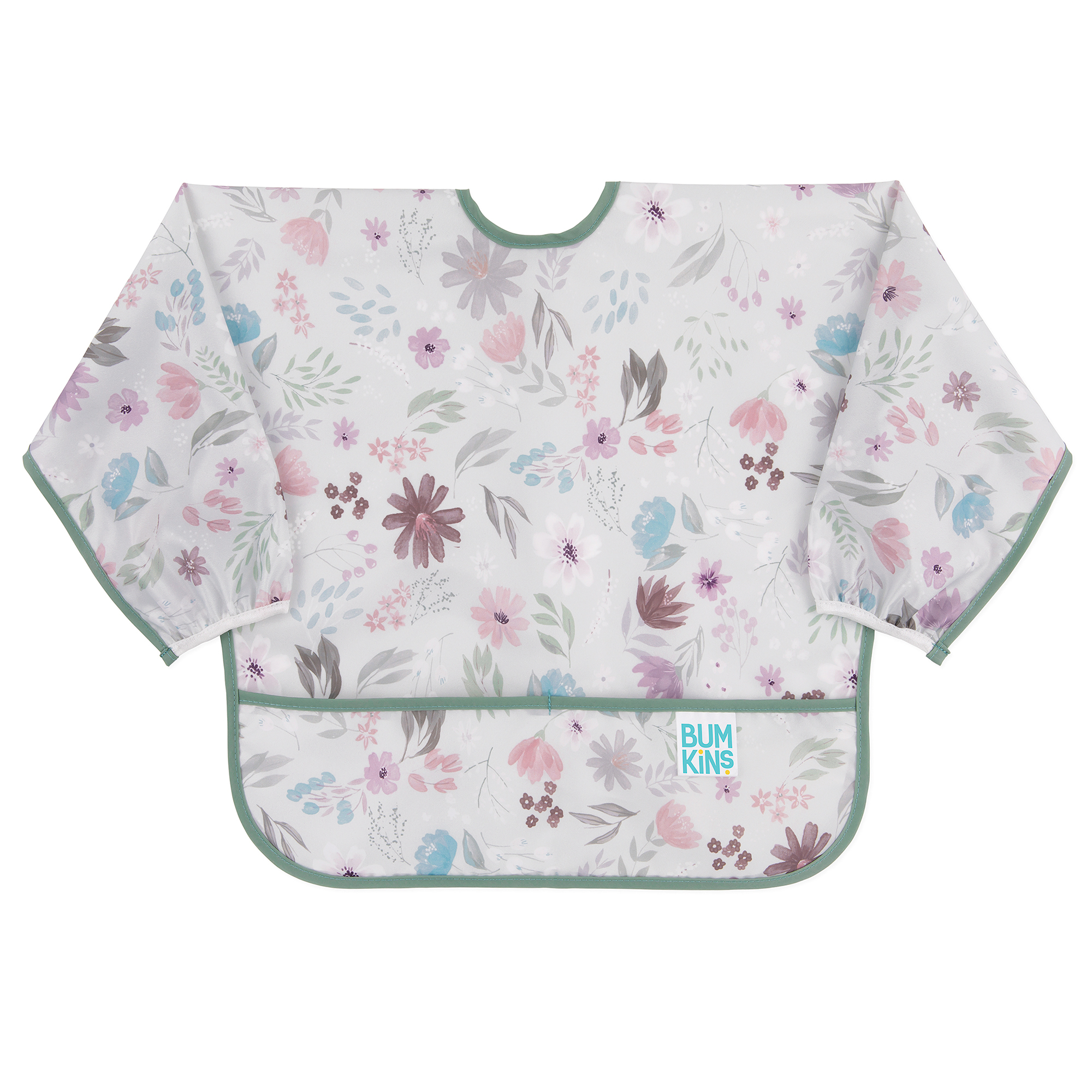 Het slabbetje met mouw is ruim bemeten en ideaal voor babyvoeding. Het is gemaakt van de lichtgewicht, duurzame, waterbestendige stof van Bumkins die vlekken en geurtjes tegengaat. Met maar één laag stof hoef je je geen zorgen te maken dat er vieze dingen tussen de lagen groeien. Pas de pasvorm aan je kleintje aan met een striksluiting aan de achterkant en elastische manchetten. Een groot opvangbakje helpt morsen, kruimels en nog veel meer op te vangen. Afveegbaar en machinewasbaar voor eenvoudig schoonmaken, zodat je hem keer op keer kunt gebruiken!