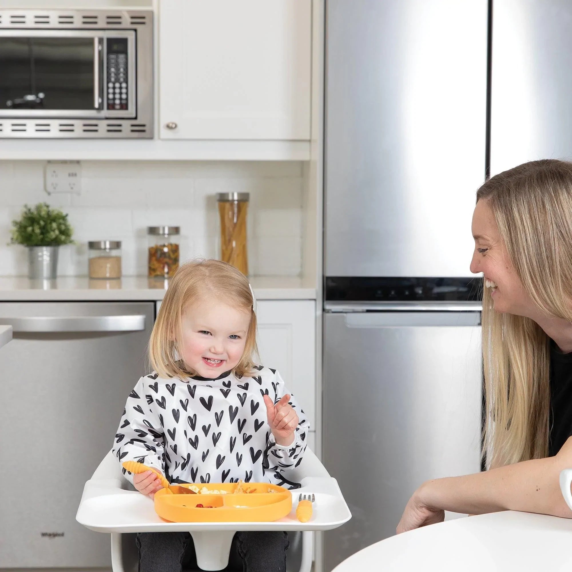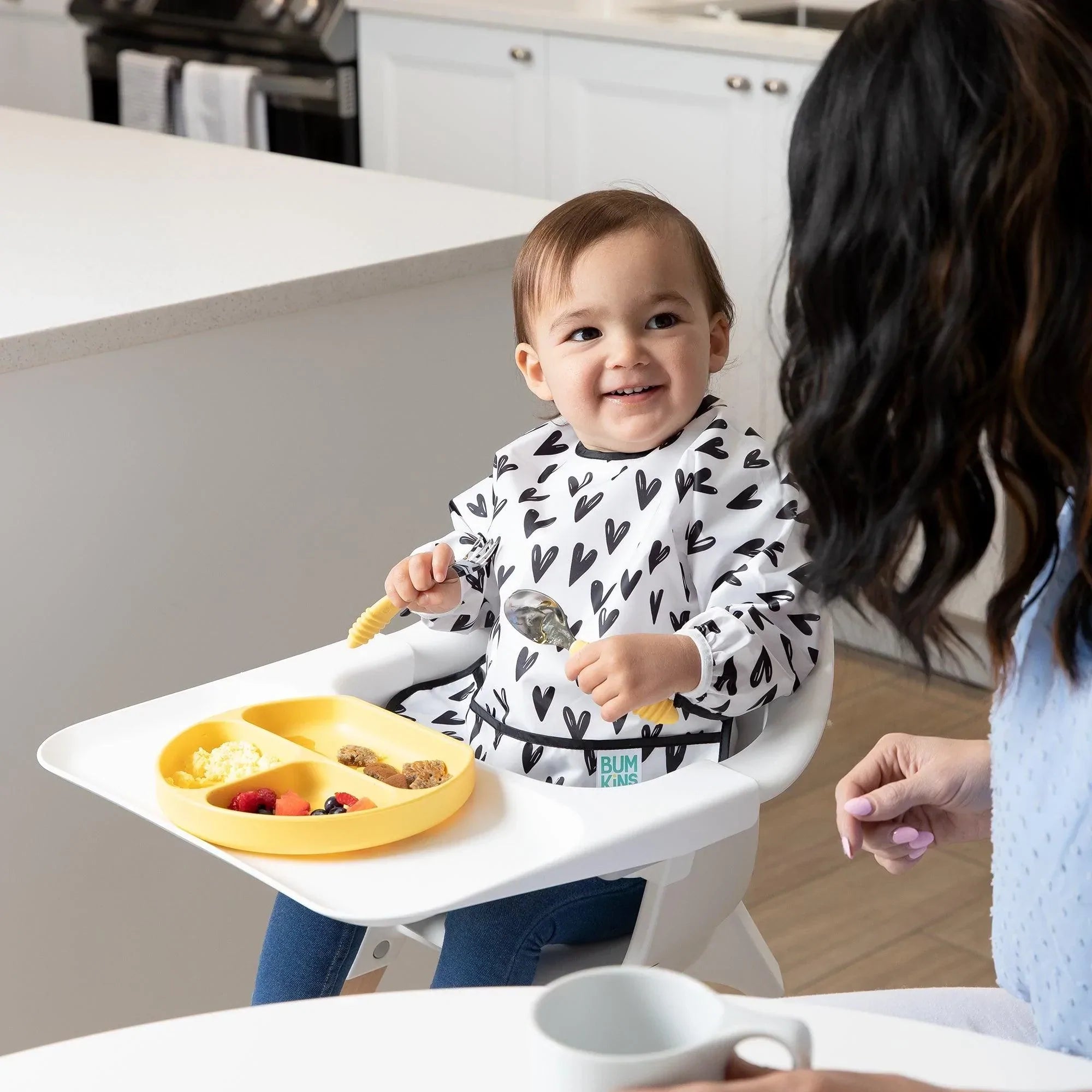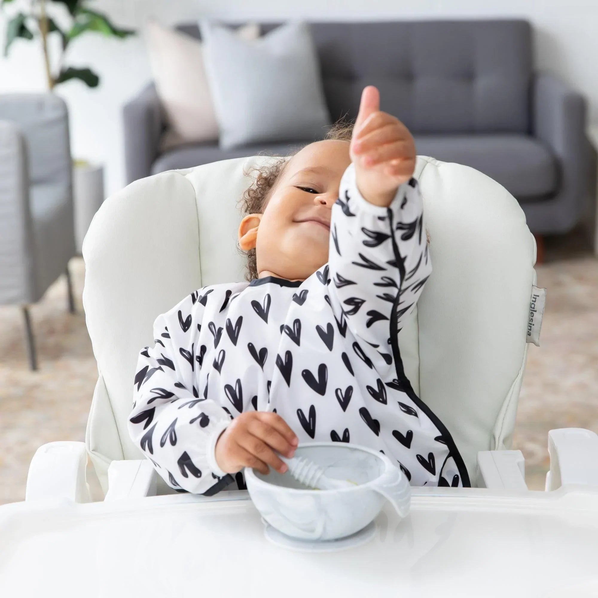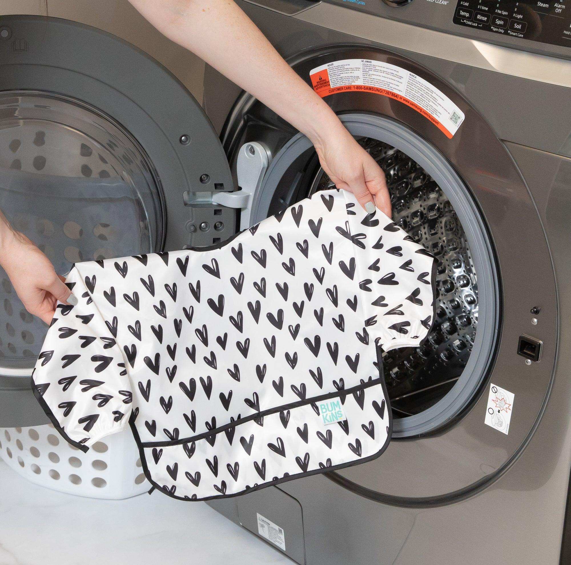 Het slabbetje met mouw is ruim bemeten en ideaal voor babyvoeding. Het is gemaakt van de lichtgewicht, duurzame, waterbestendige stof van Bumkins die vlekken en geurtjes tegengaat. Met maar één laag stof hoef je je geen zorgen te maken dat er vieze dingen tussen de lagen groeien. Pas de pasvorm aan je kleintje aan met een striksluiting aan de achterkant en elastische manchetten. Een groot opvangbakje helpt morsen, kruimels en nog veel meer op te vangen. Afveegbaar en machinewasbaar voor eenvoudig schoonmaken, zodat je hem keer op keer kunt gebruiken!