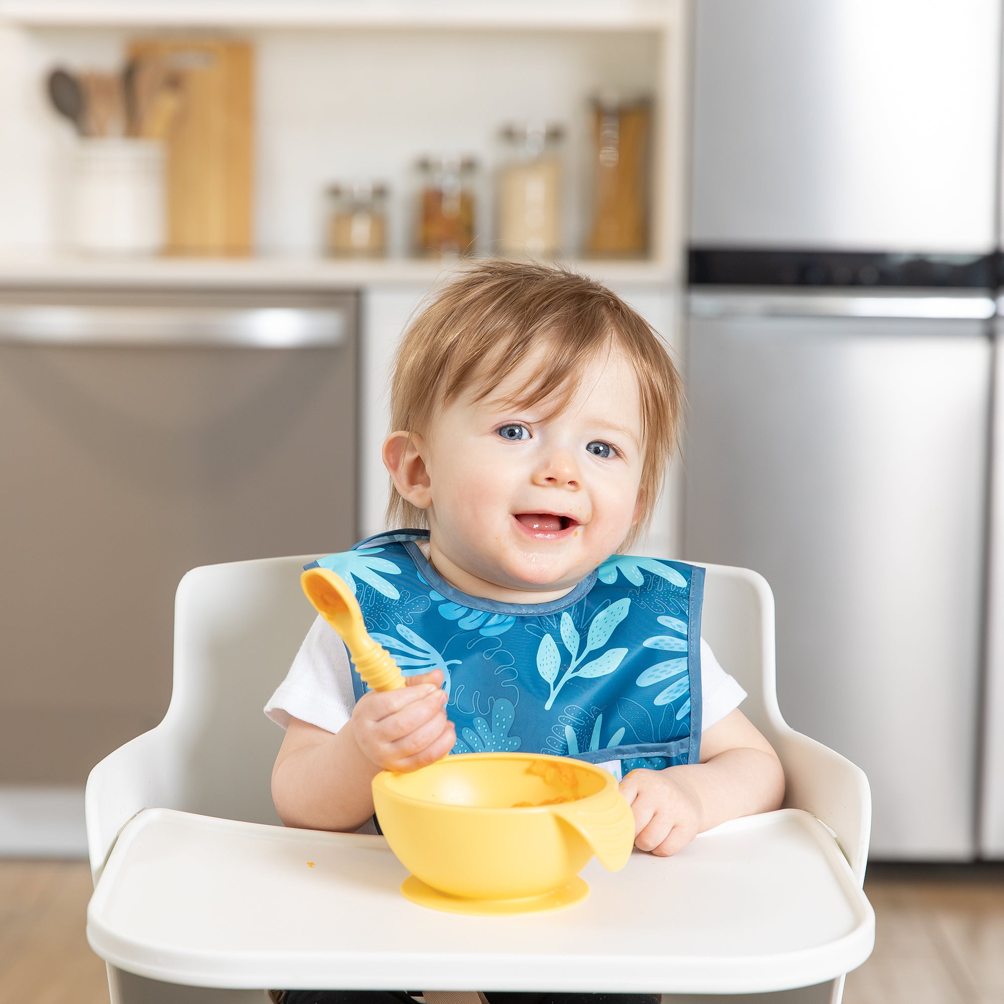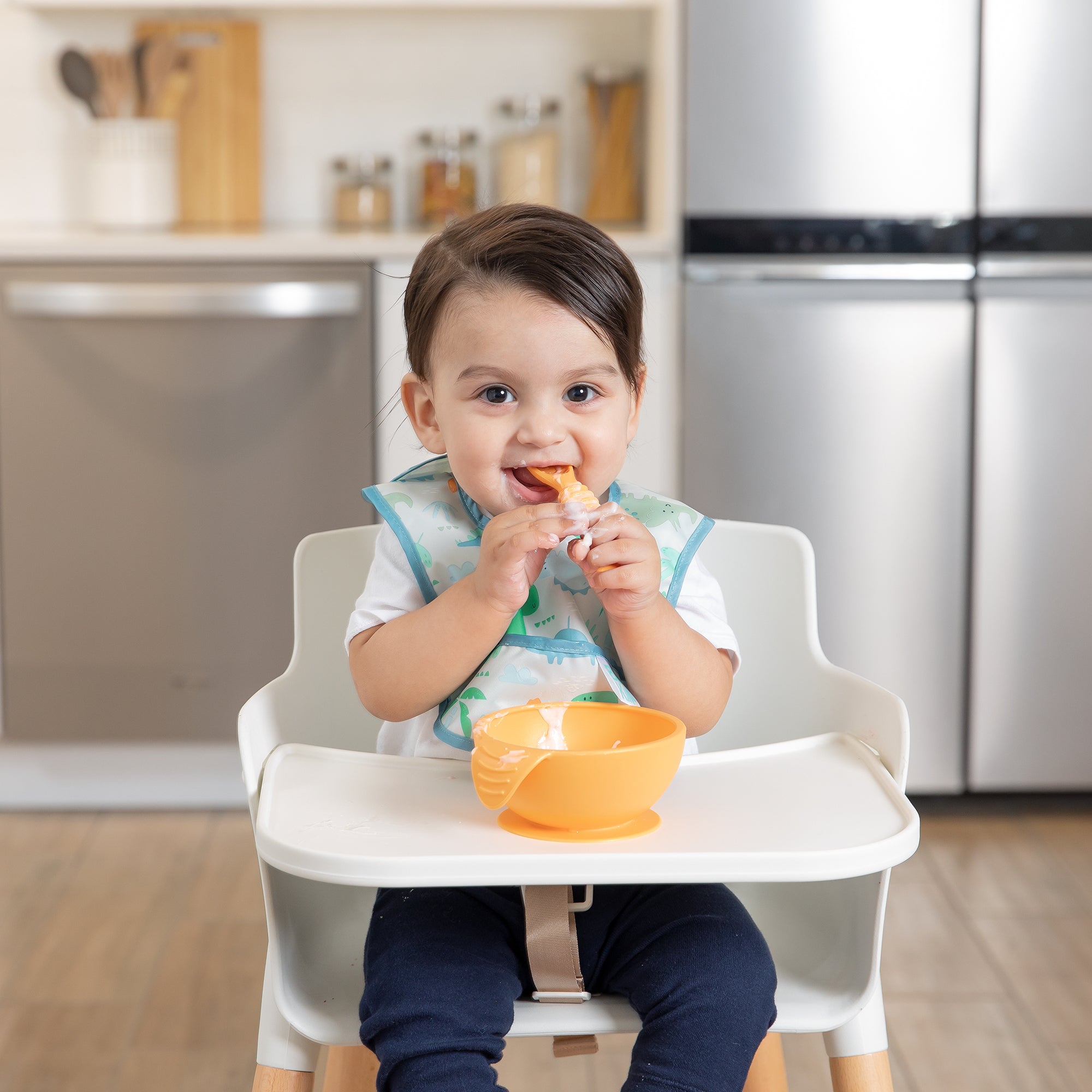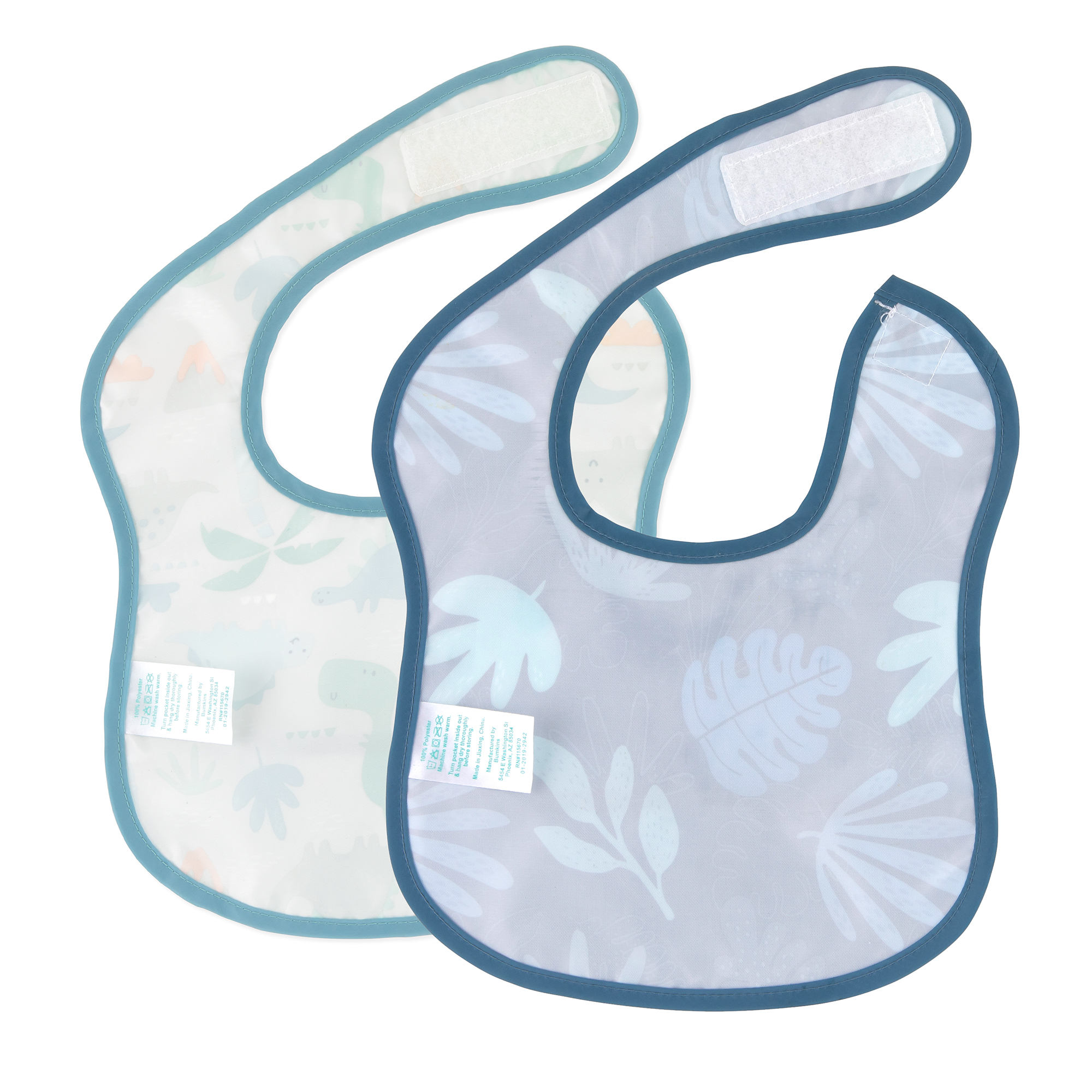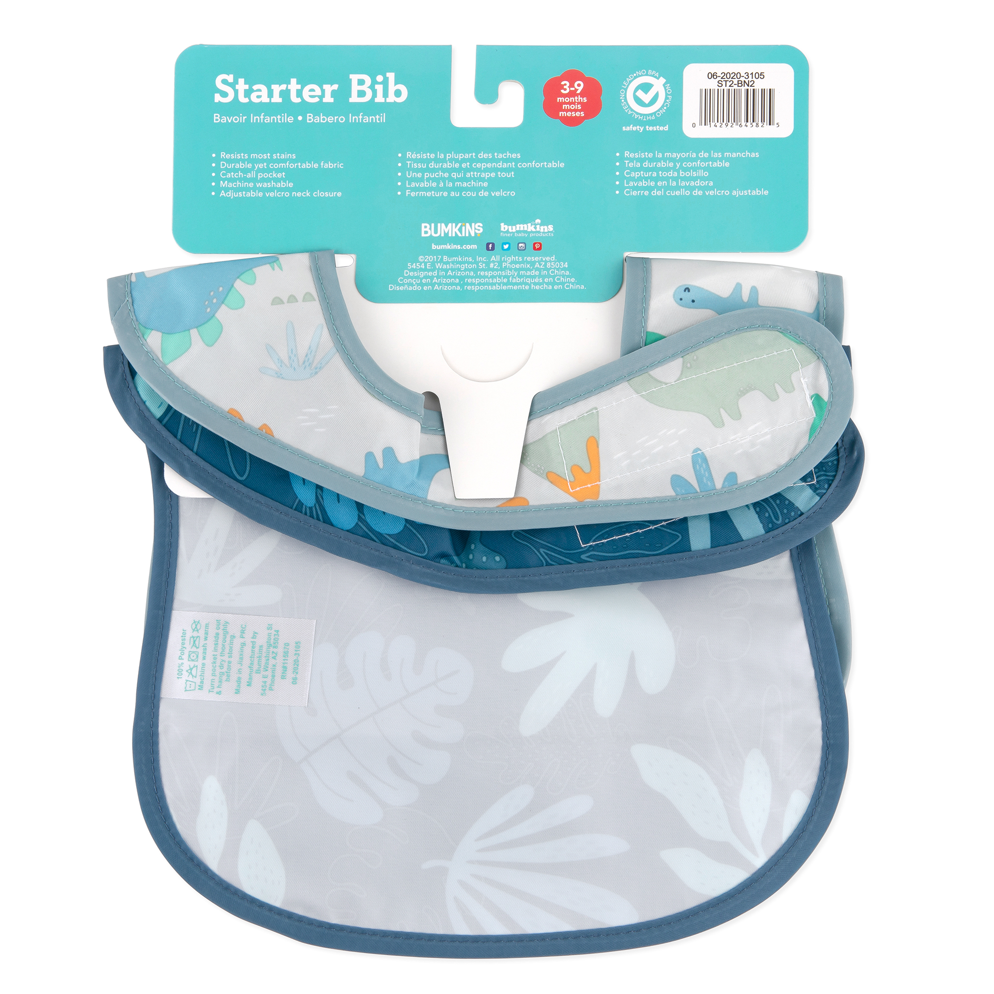 Deze Starter Slabbetjes zijn perfect voor baby's eerste voeding en worden met een klittenbandsluiting over de achterkant van de schouder bevestigd voor een snelle, verstelbare en trekveilige pasvorm en hebben een grote opvangzak om gemorste etensresten, kruimels en meer op te vangen. Starter Slabbetjes zijn gemaakt van Bumkins lichtgewicht, duurzame, waterdichte stof die bestand is tegen vlekken en geurtjes. Dankzij de eenlaagse constructie hoef je je geen zorgen te maken dat er vieze dingen tussen de lagen stof groeien. Deze slabbetjes zijn afveegbaar en machinewasbaar, dus makkelijk schoon te maken, en met een pak van twee heb je er altijd eentje bij de hand!