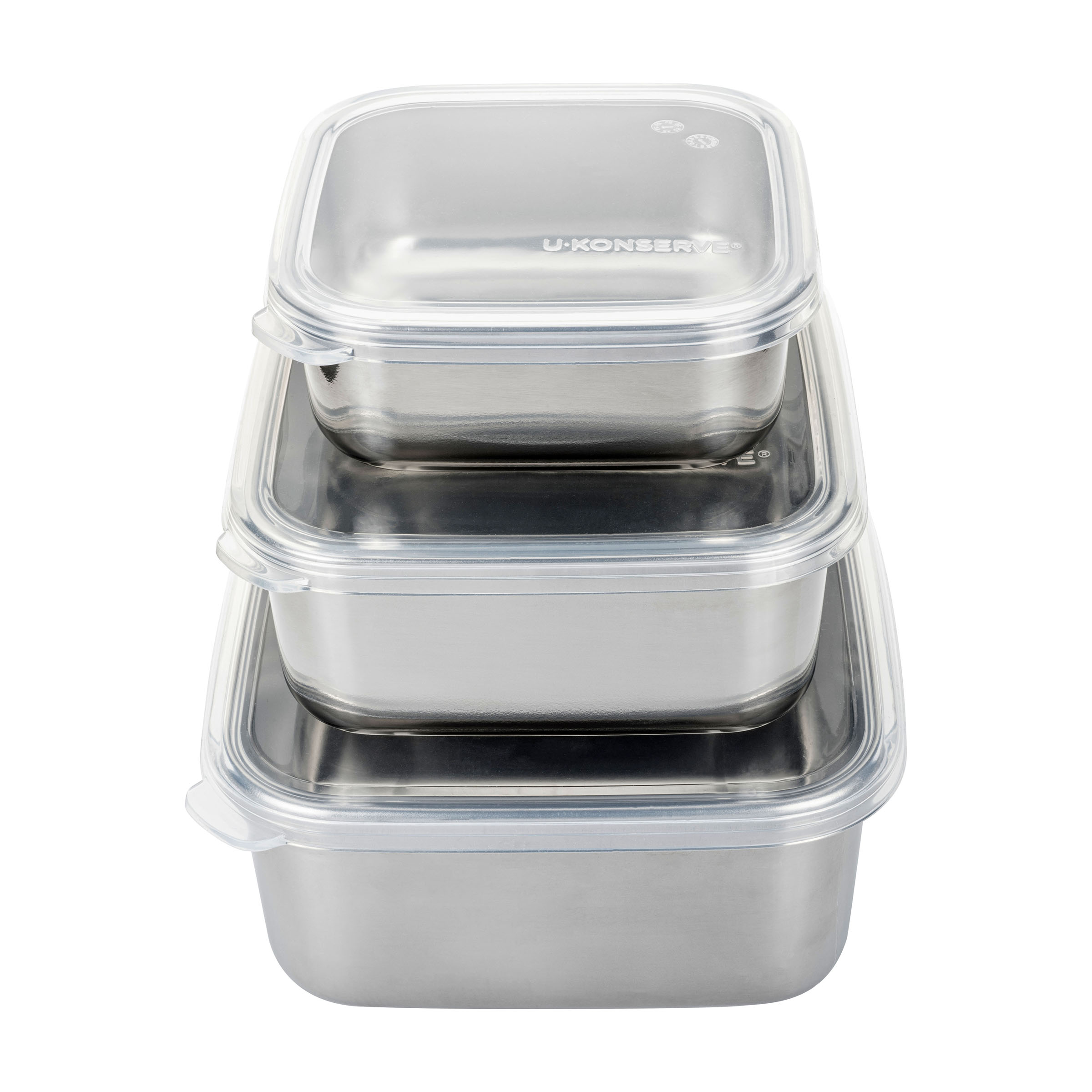 rvs met siliconen dekselRonde Voedselcontainers - Nesting Trio (set van 3) - Transparant