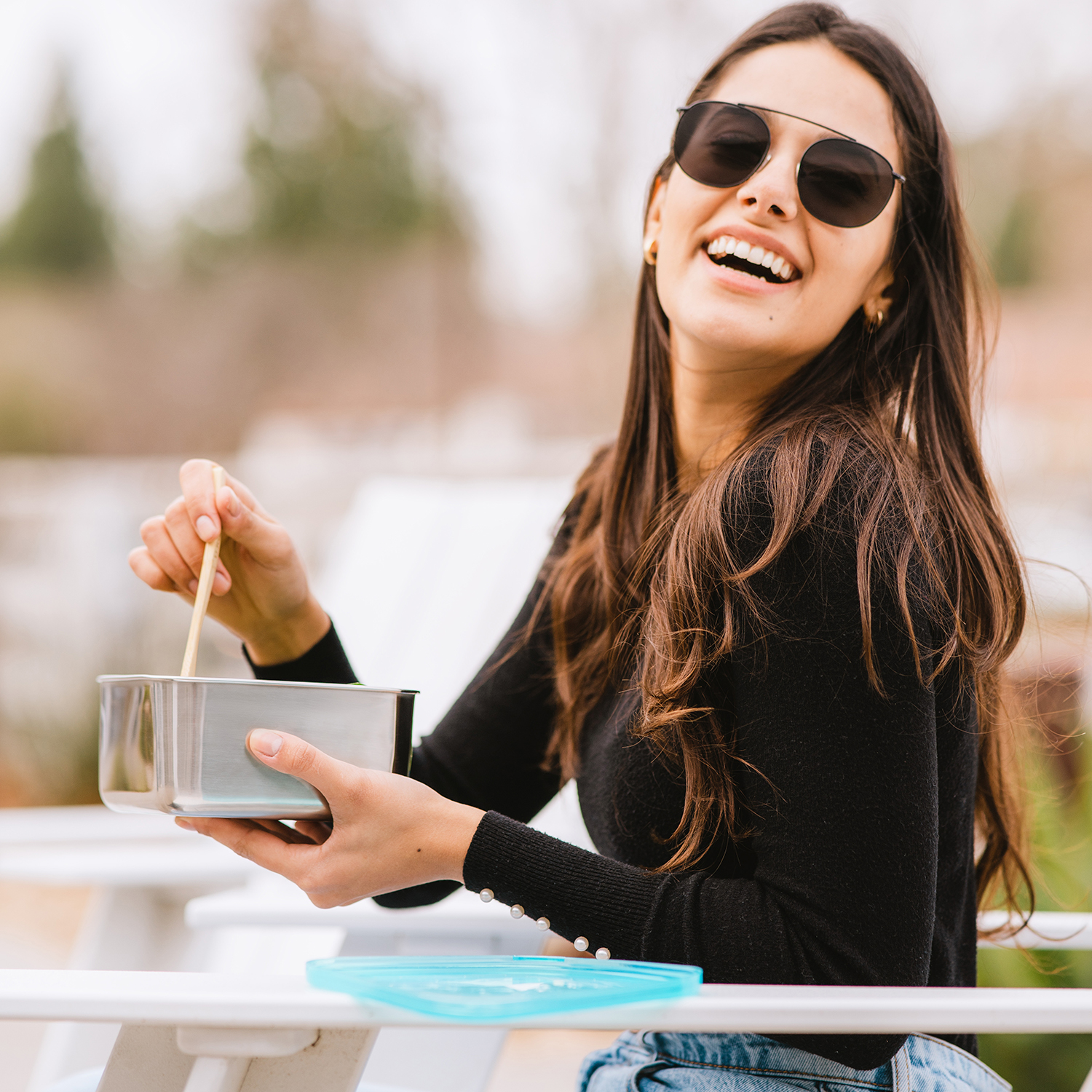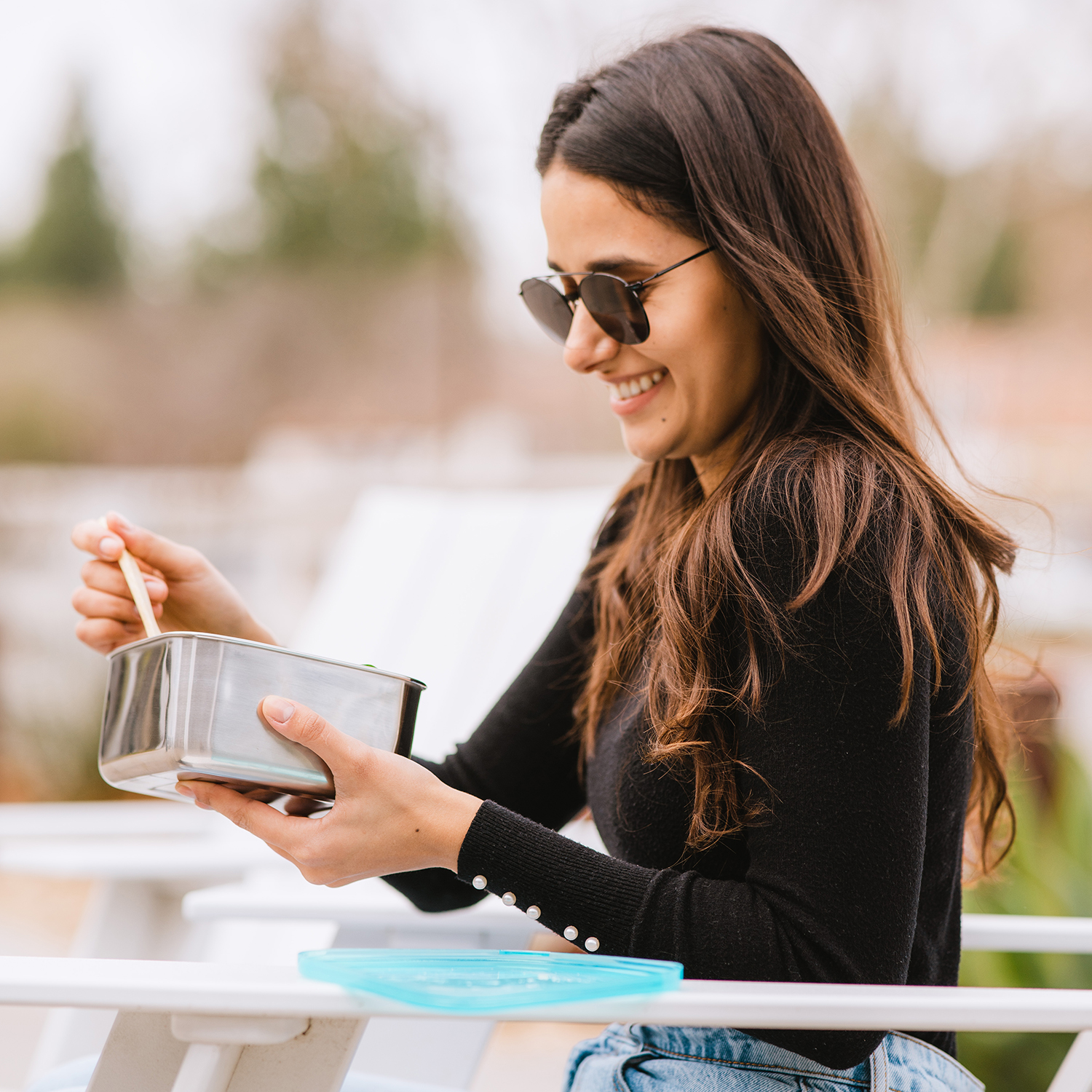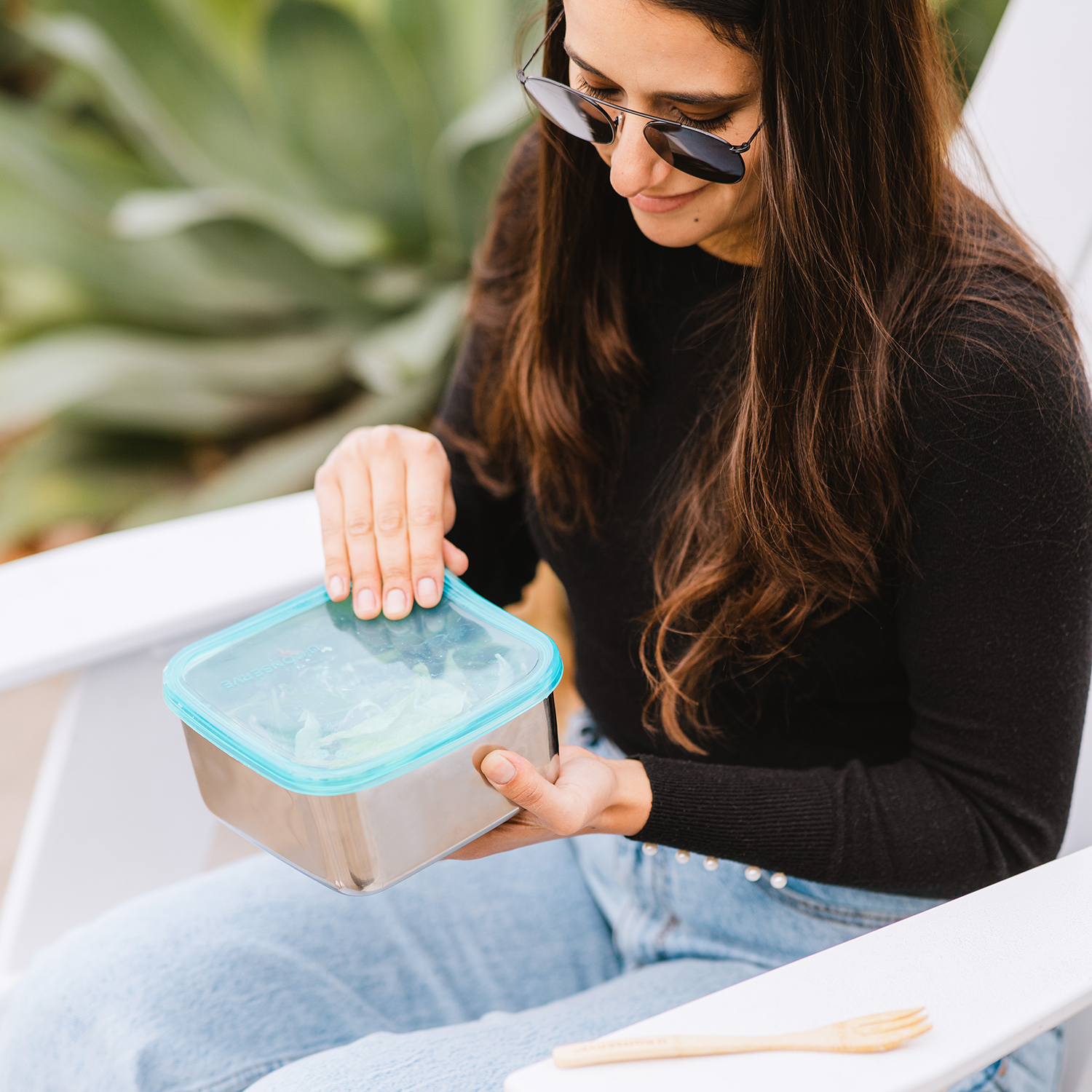 Onze vertrouwde roestvrijstalen vierkante bakjes met glasheldere siliconen deksels hebben nu nieuwe kleurrijke transparante opties! Perfecte afvalvrije oplossing voor kinderlunches, picknicks, reizen, buitenavonturen en grote boodschappen. Pak snacks, lunches en hoofdmaaltijden in terwijl je verpakkingen voor eenmalig gebruik vermindert. Onze vierkante bakjes zijn ook ideaal voor keukenorganisatie, voorraadkast makeovers, meal prep en restjes voor het hele gezin. Onze formaten zijn veelzijdig genoeg voor alle voedselopslagbehoeften thuis en onderweg, terwijl je afval bespaart van onze steeds groter wordende stortplaatsen. Flexibele siliconen deksels zijn gemakkelijk te openen voor kleine handjes en de lekvrije functie houdt morsen op afstand. Onze nieuwe combinatie van niet-giftig roestvrij staal en siliconen maakt deze lunchboxen de beste zero-waste oplossing voor jou en de planeet.